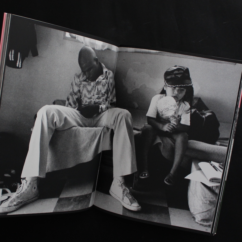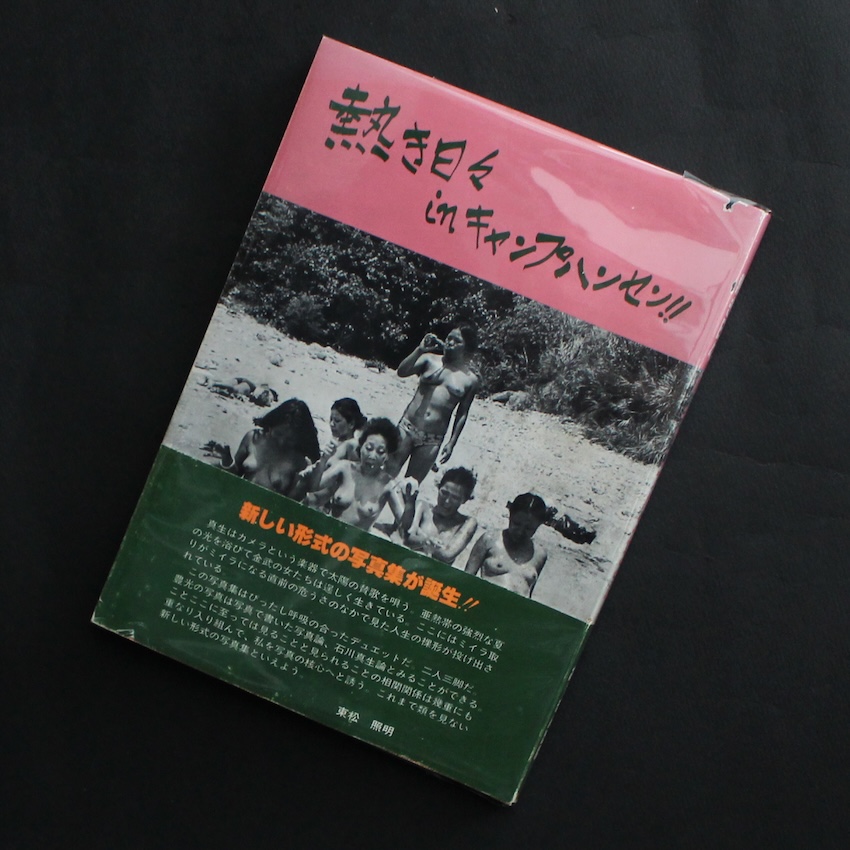 戦後沖縄を代表する写真家である石川真生と比嘉豊光による作品集『熱き日々 in キャンプハンセン!!』。2013年に、新たに再編集がなされた『熱き日々 in オキナワ』(Foil)が刊行されましたが、こちらがオリジナル。比嘉康雄・平良孝七と言った戦後沖縄写真の先導者の系譜を継ぎ、沖縄写真をリードしてきた比嘉豊光と石川真生の共著という形態が取られています。本土復帰以後も、アメリカナイズされた街は残り、米軍たちの夜の盛りを写真に撮ってやろうと意気込んで、自らも外人バーで働き、米軍のボーイフレンドまで作った石川は、次第に外人よりもそこで働く女性たちの、美しくそしてたくましい姿に魅せられ、カメラの矛先は彼女たちに向けられていきました。外人相手に働く姿は、時に冷たく厳しい目で見られることがありながらも、生きるために、愛のために、強く生きる女性の姿が、情熱的に収められた名著。但し、P7-8及びP57-60は、刊行後プライバシー問題のためにページが削除されています。東松照明・荒木経惟及び徳田陽子によるテキスト。帯付。極希少本。