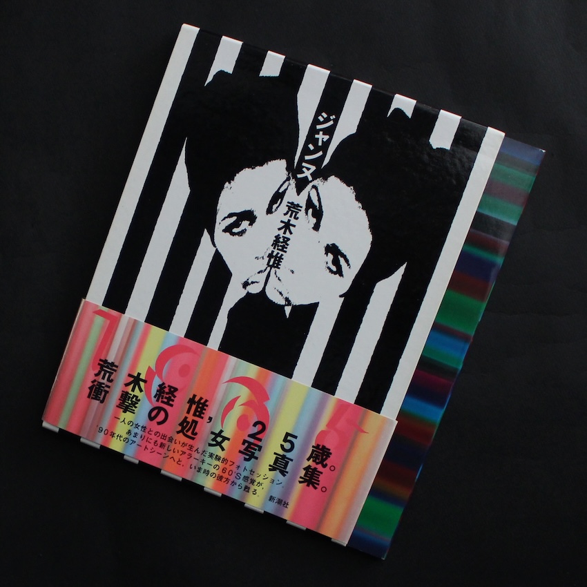 「アラーキー」の呼称でも知られる、日本を代表する写真家・荒木経惟の写真集『ジャンヌ(Signed & Message)』。1991年に刊行されていますが、荒木が電通の広告カメラマンとして勤務していた1965年、25歳の時に撮影、制作されたもので、元々は4冊のスクラップブックに直接プリントを貼り込んだ私家版写真集(原題は『Gemi: La Passion de Jeanne d’Arc』)という体裁でした。オリジナルは紛失してしまいますが、約25年後にすべてのページを複写したフィルムが見つかり、本書の刊行へと至りました。カール・テオ・ドライヤー監督による映画『裁かるるジャンヌ』にインスパイアされた本書は、「大胆なモンタージュ手法を駆使した、生々しい手作業の痕跡をとどめる画面の合間からは、’60年代という時代の空気を全身に受けとめた25歳の写真家の、若々しい息づかいが聞こえてくるようだ」(解説より)。謹呈署名&メッセージ入り。