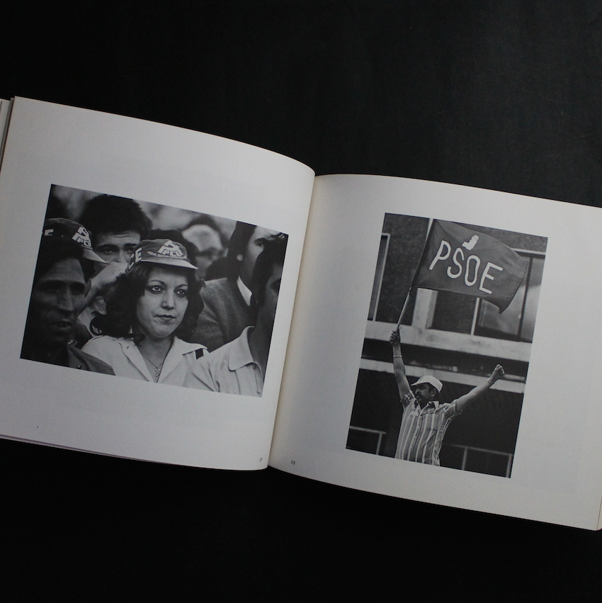 日本の写真家酒井猛の写真集「ふたたび歴史の中に -スペイン1977年6月-」。1948年に横浜に生まれ、70年以降よりフリーランスの写真家として、主に雑誌やグラフ等にルポルタージュを発表し、国内外を舞台にジャーナリストとして活躍した酒井猛。そして本書が78年に刊行された作品集。副題「41年ぶりに歴史の中に甦った現代スペイン '77年,6月の歴史的な総選挙のドキュメント写真集」のタイトルの通り、長らく続いたフランシスコ・フランコ称号「カウディーリョ・デ・エスパーニャ」による独裁がフランコの死とともに終わりをつげ、新たな時代を迎えようとした激動のスペインを舞台に撮影された一冊。総選挙が行われた前後の約1ヶ月の間に当地に滞在し、「スペインが、スペインゆえに、スペインである為の何かがはじまろうとしている」歴史的瞬間が捉えられています。ムーブメント関連の写真集は憎しみや怒りにみちた「Protest / 抵抗」ものが多い中で、希望と期待に満ちたポジティブな人々の姿が収められた稀有で貴重な作品集です。