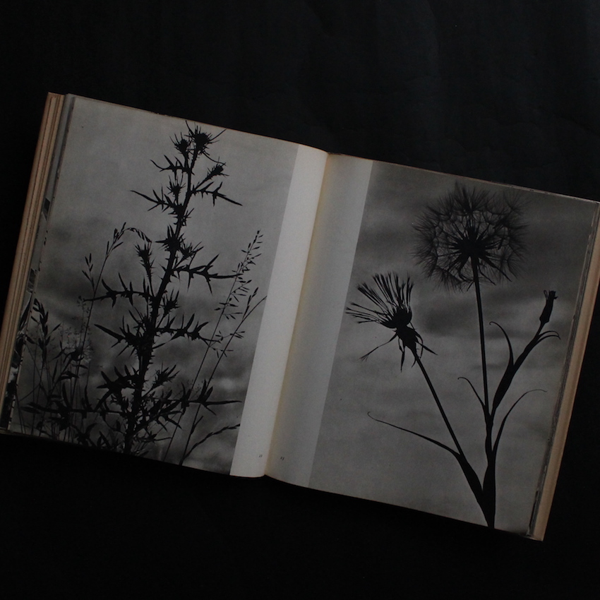 ドイツの写真家パウル・ヴォルフ(Dr. Paul Wolff)とアルフレッド・トリッシュラーによる共著『Schonheit am Wege』。ライカ使いの名手として知られ、ライカ(カメラ)の可能性を拡大した功績は高く評価されており、1934年には『Mine Erfahrungen mit der Leica / ライカによる私の経験』を刊行し、日本でも大変人気のあったヴォルフ。一方で、1927年にフランクフルトでヴォルフとともにフォト・エージェンシー''Dr. Paul Wolff & Tritschler''を設立して、30年〜40年代にかけて、コマーシャルやインダストリアルな写真の世界で活躍したトリッシュラー。本書は、戦後1949年に発表された作品集で、草木や花の静物写真で構成されています。自然のテクスチャーやフォルムの美しさに魅了される一冊です。