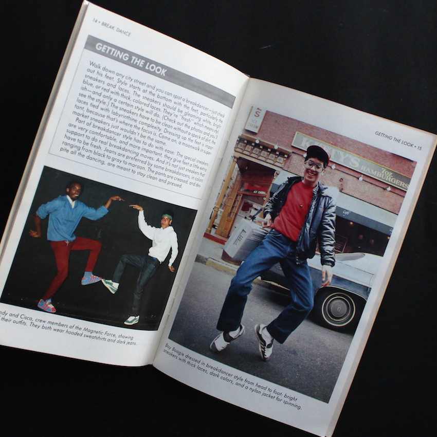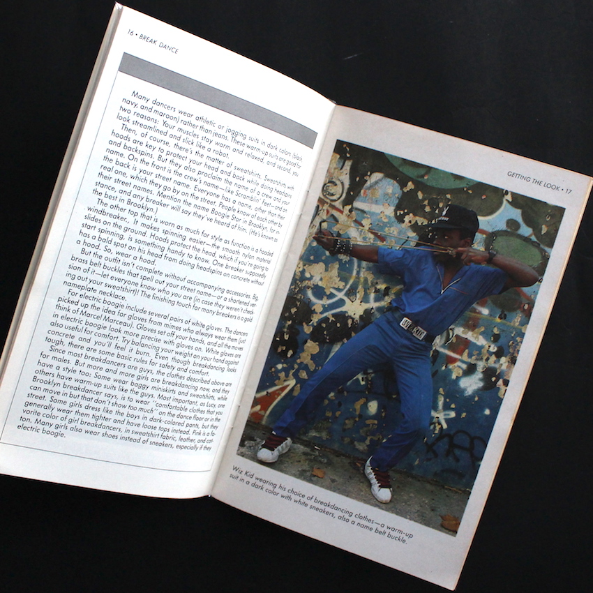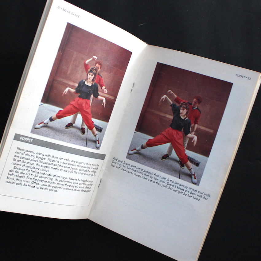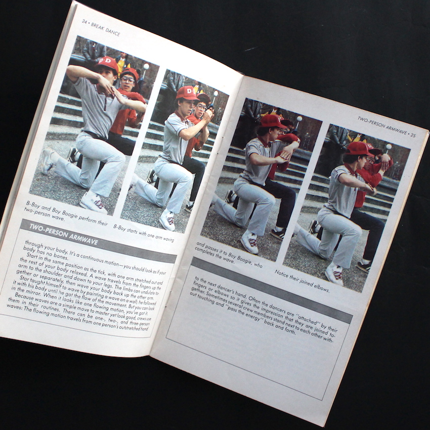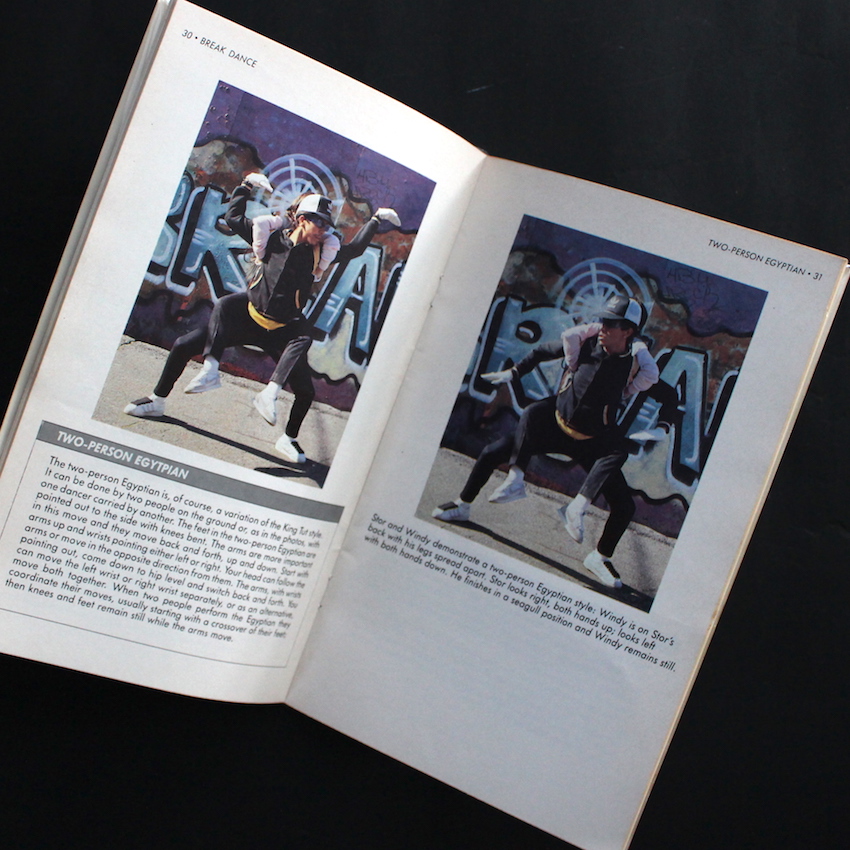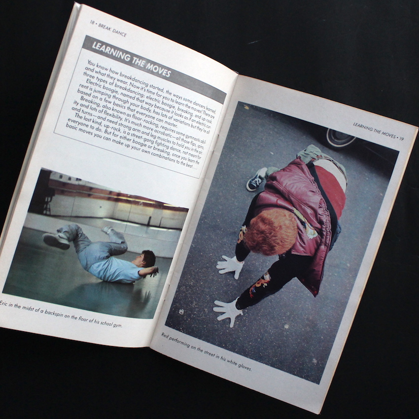 1984年に日本で公開された映画「ブレイクダンス (原題:Breakin')」。カリフォニアのヴェニスビーチなどを舞台に、若者たちのブレイクダンスを通じた青春を描いた作品で、日本でもダンス人気が広まっていくきっかけとなりました。70年代よりアメリカのラテン系やアフリカ系の若者たちの間で広まっていたこのブレイクダンスの魅力を伝えるべく刊行されたのがこちら。アメリカの女性作家で、多くの大学でも教鞭を執るボニー・ナデルと、写真家ジョン・スモールとのコラボレーションという形式で出版されています。「Puppet」「Walls」「Locking」「Huevo」「Electric Boogie Style」「Backspin」「Headspin」「Handglide」「Turtle」「Bridge」「Helicopter」といったダンス・スタイルを、ユニークなレイアウトによる写真図版とテキストを交えて紹介しています。文庫本大サイズのコンパクトな体裁ながらも、見応え・読み応えのある一冊です。