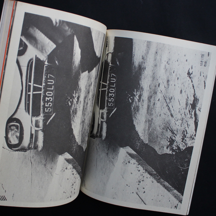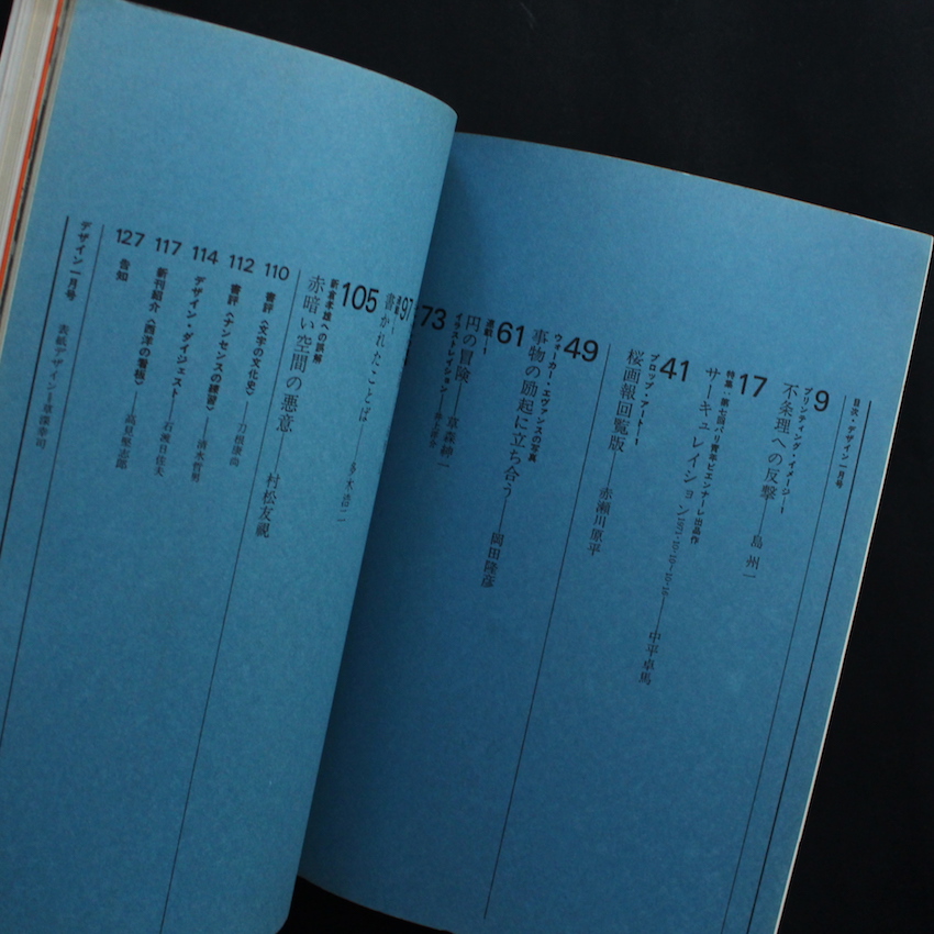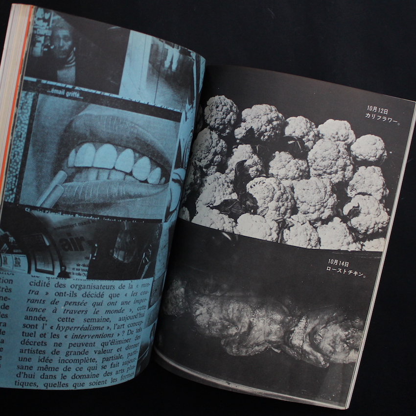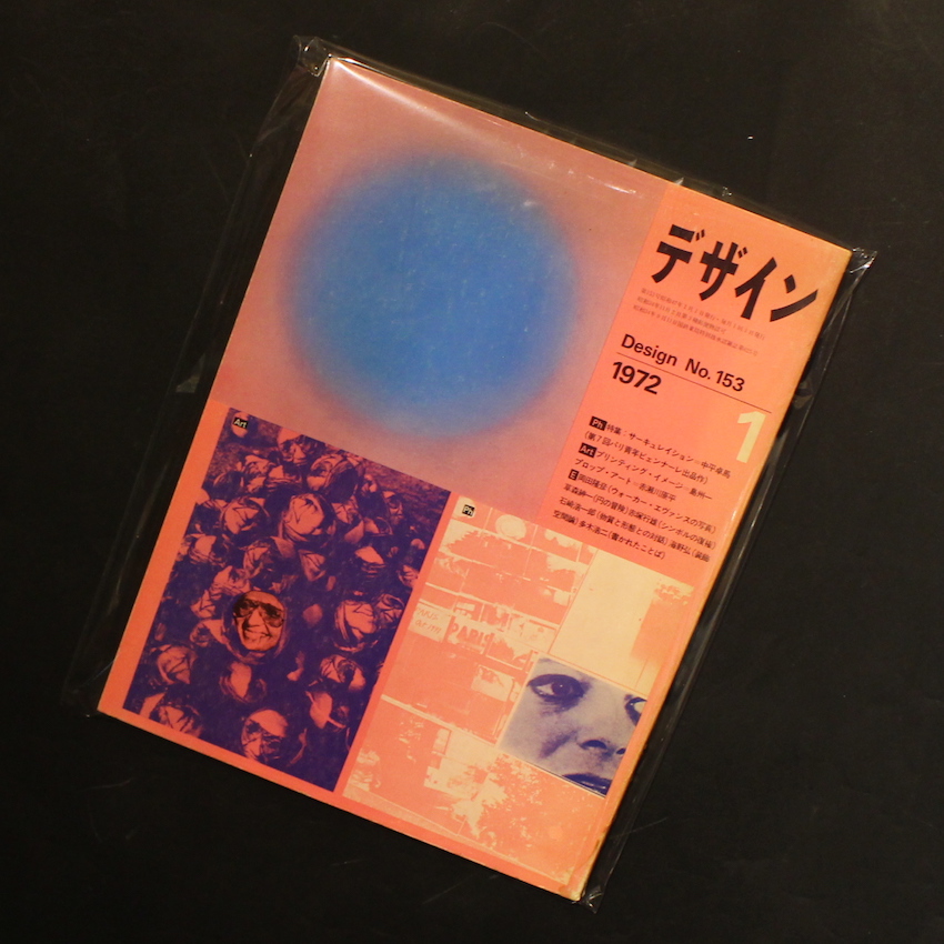美術出版社より刊行されていた雑誌『デザイン』の1972年1月号で通巻153号。本号の最大の魅力は、「第7回パリ青年ビエンナーレ」展において中平が発表した「サーキュレーション 1971.10.10 ~ 10.16」が収録されているところです。パリで昼間に撮影して、夜に現像、翌日には展示するという、中平なりの芸術表現であり、その意図については、自身のテキスト集『なぜ、植物図鑑か』でも詳細に綴られています。また作品自体は、2012年にオシリスより刊行された『サーキュレーション : 日付、場所、行為 / Circulation : Date, Place, Events』でまとめられています。その他、中平と同じくプロヴォークメンバーであった岡田隆彦によるテキスト「事物の励起に立ち合う ウォーカー・エヴァンスの写真」や、赤瀬川原平による「桜画報回覧板」、島州一による「不条理への反撃」なども掲載されています。