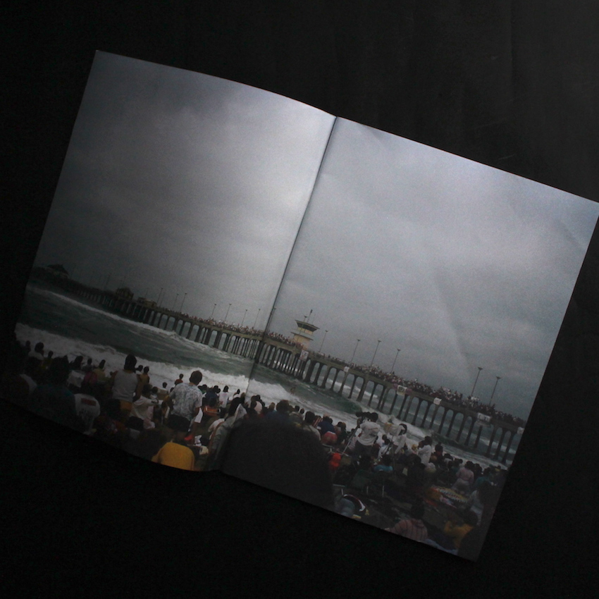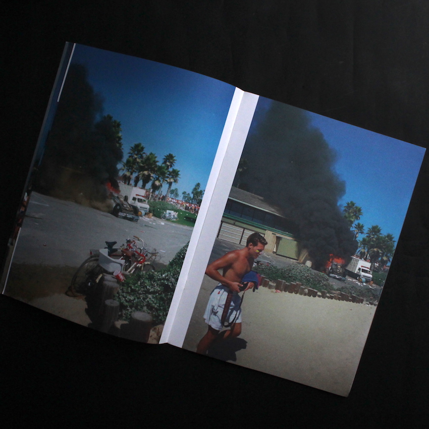 イギリスの写真家、ニック・ワプリントンの写真集『Surf RiotSurf Riot(Fair Copy)』。1991年に、イギリスの労働者階級の家族に密着し、その暮らしぶりをドキュメントした写真集『Living Room』で鮮烈にデビューしたニック・ワプリントン 。ドキュメンタリーの手法を通じて社会問題やファッションへとアプローチし、数々の作品を制作してきています。本書は、荒木経惟や森山大道ら日本人の写真家の個展及び写真集の発行を数多く行なっている、アメリカのLittle Big Manより2011年に刊行された作品集で、カリフォルニア州のハンティントンビーチで行われたサーフィンのプロ選手権の会場で起きた暴動の一連をカメラに収めた一冊。カーニバル化したサーフィン大会裏で起きたこの暴動は、パトカーが横転して火の手が上がり、青く澄んだ空に黒い煙が舞う異様な空気感に包まれました。その会場に居合わせ偶然フィルムを1ロール持っていたワプリントンは、その光景を25枚の写真に収めました。300部限定(うち普及版200部限定)。エディション・ナンバー入り。