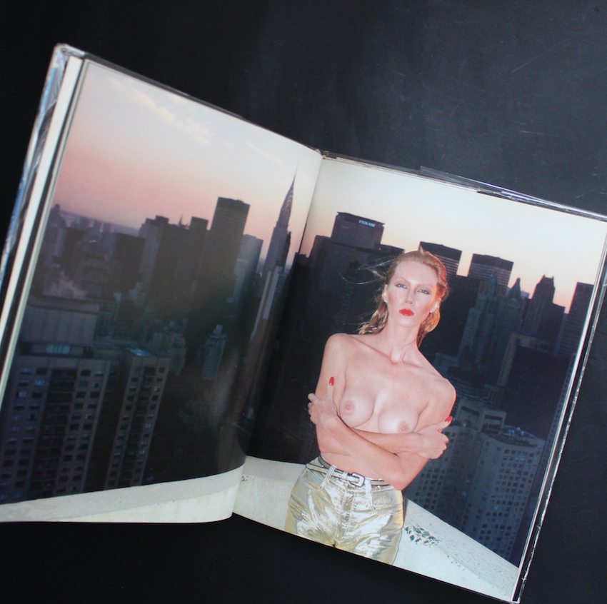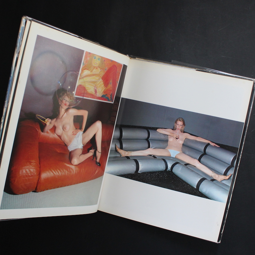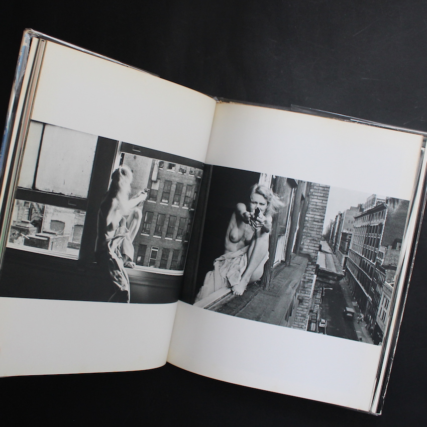 日本の写真家・新正卓の写真集『American Parody』。1936年東京生まれ。60年代にグラフィック・デザイナーとして活動していた新正は、自身のトレーニングとしてイメージの撮影を個人的に行っていました。その中の1枚がデザイナーとして付き合いのあった写真編集者・山岸章二の目に留まり、1969年に『カメラ毎日』に掲載され、その後写真家へと転向。ファッションや広告の分野で活躍しながら、ヌード写真を中心とした写真集を手掛けています。本書は『Erika』『Patricia』に続く、新正のサードブックで、ニューヨークを舞台にアニータをモデルとして撮影した図版で構成された作品集。スーパーマン、星条旗などを用いたパロディ風な要素に、新正らしいグラフィックのデザイン的要素も織り交ぜられ、カラー及びモノクログラビアも併用した美しい写真集となっています。