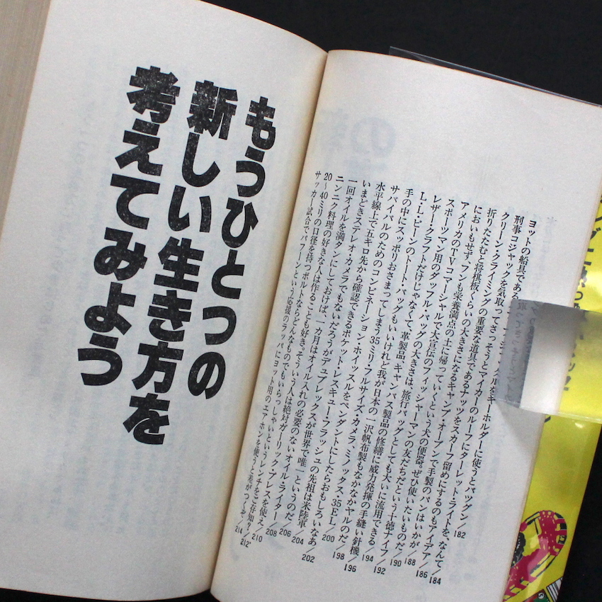 日本の編集者である寺崎央(1943-2012)の作品集『若者の新生活宣言』。加納典明がニューヨークで撮りおろしたエロスフォト『Fuck / 燃えるパーティー』、そして同出版のホリデー新書として刊行された『レノンとヨーコ ビートルズの異端のカップル』の編集はこの寺崎によるものです。『MEN'S CLUB』や『平凡パンチ』でキャリアを積み、70年代のアメリカ取材を機に発表した『Made in U.S.A. Catalog 1975』は10万部を超える爆発的ヒット。アメカジと言われたアメリカのファッションやライフスタイル、それらに付随する「グッズ」やその「志向性」を、日本の若者にいち早く紹介した人物でありました。80年代以降もPOPEYEやBRUTUSなどで編集や寄稿を続けていきましたが、こちらは70年代に発表した初の単独作品集。Made in U.S.Aの雑誌シリーズは、アメリカ取材を通じて感じたカルチャーを「イメージ」で表現したものでしたが、こちらは「テキスト」で伝えた一冊です。(一部極少線引きあり)