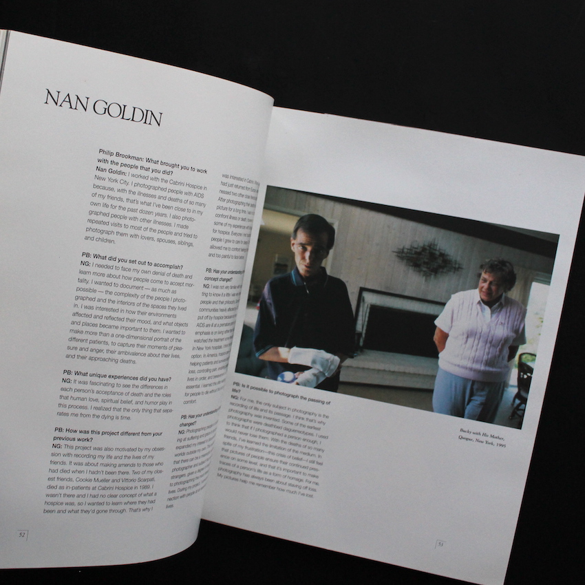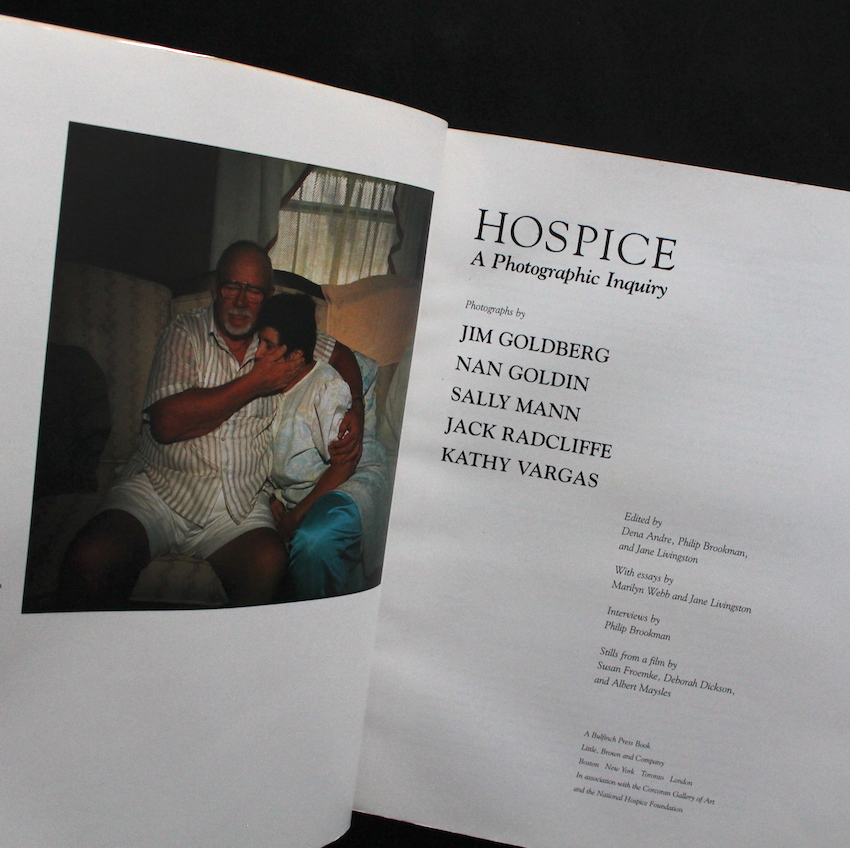 本書は、1996年にアメリカのワシントンD.C.のコーコラン美術館を皮切りに、2000年まで10箇所を超える美術館を横断したエキシビジョン「Hospice」展を機に刊行されたカタログ作品集。主催者である医薬品・消費材メーカーの「ワーナー・ランバート」が、「Hospice」(終末期患者の痛みや症状の緩和に焦点を当て、人生の終わりに彼らの感情的および精神的な要求に対処することに焦点を当てた医療の一種、という意味や、休息の場、病気や疲れた人を保護する場所という意味も包含する)の認識と理解を深めてもらうべく行ったものでした。その趣旨を伝えるべく、ジム・ゴールドバーグ、ナン・ゴールディン、サリー・マン、といった世界的にも評価の高い写真家たちで、かつ「愛」や「死」に対する探究に深い彼らを起用したことも大変興味深い一冊です。
