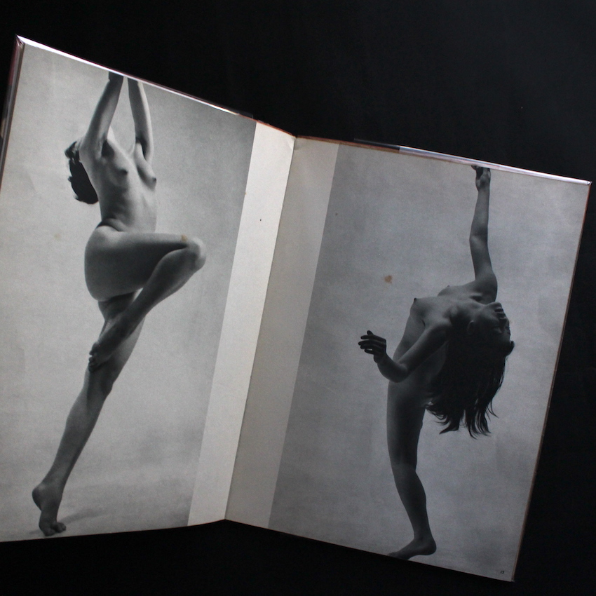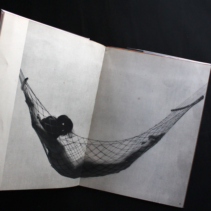 1958年から59年にかけて創元社より刊行されていたシリーズ作品集『現代日本写真全集』の第7号にあたる『ヌード・フォト集』。日本を代表する写真史家・金子隆一らによって編集された『The Japanese Photobook 1912–1990』でも紹介されており、収録図版数は20~30程度と多くはありませんが、有名写真家の代表作がグラビア印刷で楽しめる貴重なシリーズでもあります。本号の主な収録作品は以下の通り。中村正也「蔦」、奈良原一高「海の記憶」「ハンモック」「伸びる」「黒い髪」「樹上」、石元泰博「無題」「<街>より」、大竹省二「ヌード」、中村立行「習作A」「習作B」「鏡」、丹野章「都会の海」「海」、真継不二夫「黒猫と裸婦」、稲村隆正「ヌード」、今井寿恵「にょたい」、緑川洋一「シルエット」、北代省三「トップライト」、杵島隆「ヌード」、早崎治「シムフォニック・ヌード 1 & 2」。(パラフィンヤブレ大、小冊子欠)