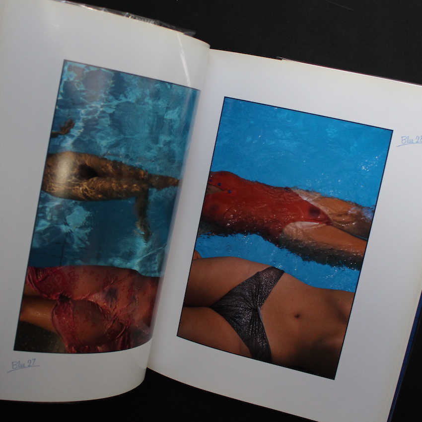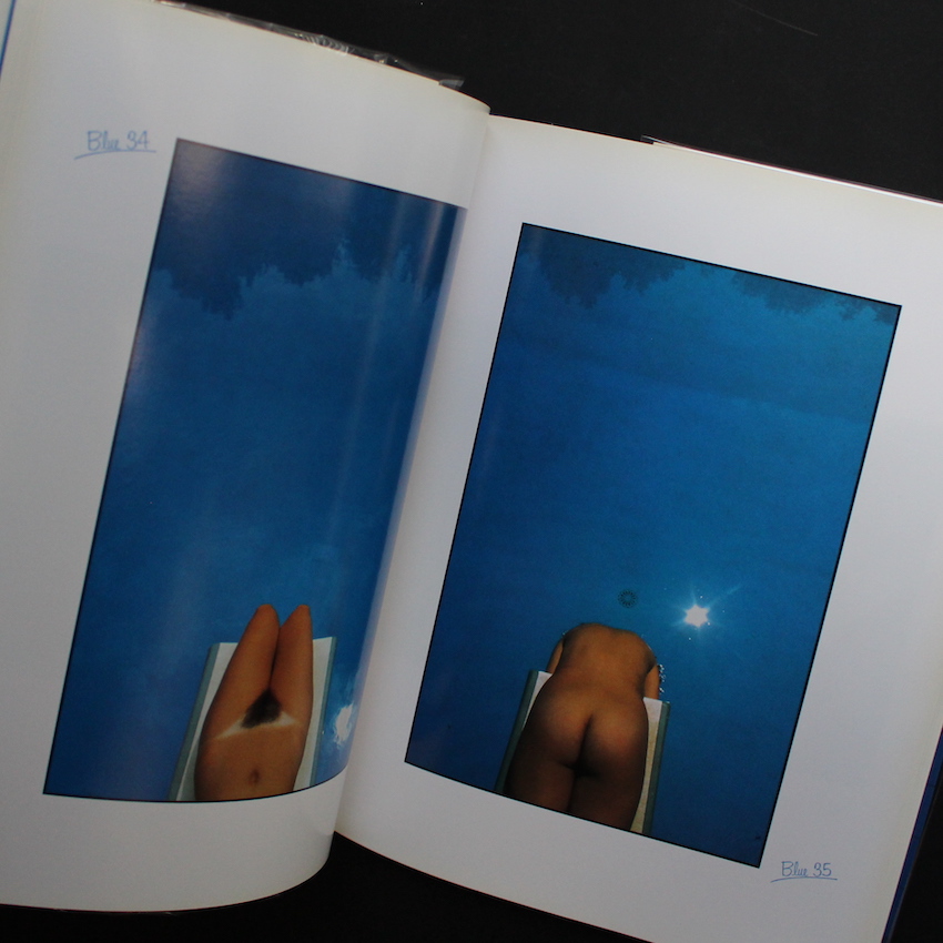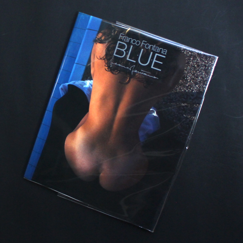 イタリアを代表する写真家のひとりであるフランコ・フォンタナの作品集『Blue』。イタリアのカラー写真のパイオニアと言えば、近年再評価が進み、数々の作品集が刊行されている「ルイジ・ギッリ」や「グイド・グイディ」が挙げられますが、忘れてはならないもう一人の写真家がこのフォンタナです。日本では、80年代にクローズアップのヌードやコマーシャル作品で注目されましたが、ギッリのようなある種「控えめ」で「地味」なスタイルではなく、原色カラーのコントラストやグラデーション、造形美溢れるランドスケープが有名です。本書は、その80年代に日本の流行通信から刊行された作品集で、プールの「ブルー色」を背景にした、ヌードなどが収録されています。帯欠。