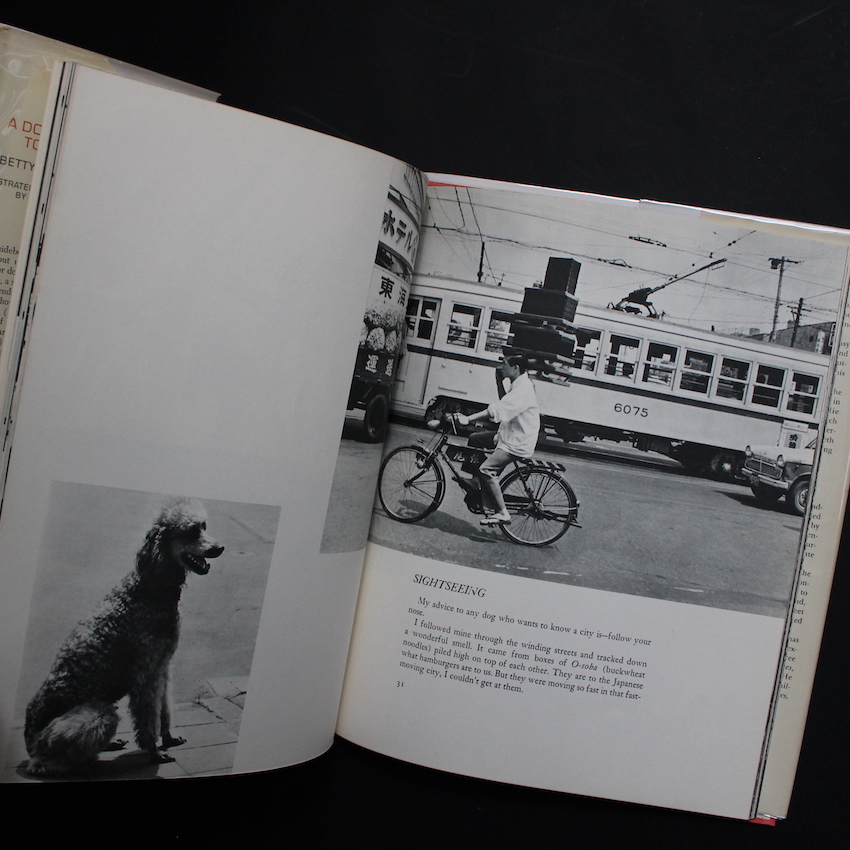 日本を代表する写真家・細江英公の写真集『A Dog's Guide to Tokyo』。東松照明・奈良原一高・石元泰博らと共に戦後50年代より活躍した日本写真の黄金時代を築いた一人である細江英公。『おとこと女』『薔薇刑』に代表される実験表現に富んだ前衛写真が代表作としてあまりにも有名ですが、同じ60年代に全くコンセプトの異なる作品も発表しています。母を失った少女がたくましく生きる姿を描いた『Why, Mother, Why?(1965)』(邦題:おかあさんのばか)、アメリカの女性作家ベティ・ジーン・リフトンとの共著で、犬と少年の大冒険の童話に細江の図版を挿し込んだ『Taka-chan and I A Dog's Journey to Japan(1967)』。そして、69年に刊行された本書になります。こちらも前作と同じくリフトンとの共著で、シルバー・プードル犬のJumblieの視点から、日本各地の文化やカルチャーを紹介したユニークなガイド本です。