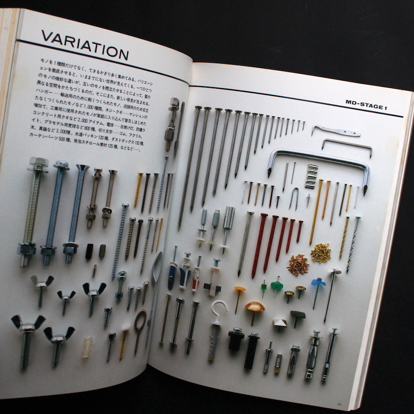 1976年に藤沢に1号店をオープンさせ、DIY、インテリア、雑貨など多様なショップイメージを持つ東急ハンズ。本書は、東急ハンズが「何をどのように考えてきたかを著したコンセプト・ノート」(本書より)であり、無数に展開される商品群の背景に秘められた東急ハンズの思考やユニークな着眼点を紐解きます。今でこそ同様なショップ(雑貨店)がありますが、改めてこの本を読み直すと、例えば業務用やプロユースの道具類やクラフトの提案など、そのコンセプトやセレクトされた商品には先見の明を感じられます。具体的な数字や表を使って解説されているのでビジネス書としても優れ、お店作りに役立つ一冊です。ラバーを使った装幀などにも東急ハンズらしいこだわりが感じられ、やまもと寛斎、菊地信義、川本三郎、赤瀬川原平など各界著名人が東急ハンズについてテキストを寄せた冊子付きです。第2刷。