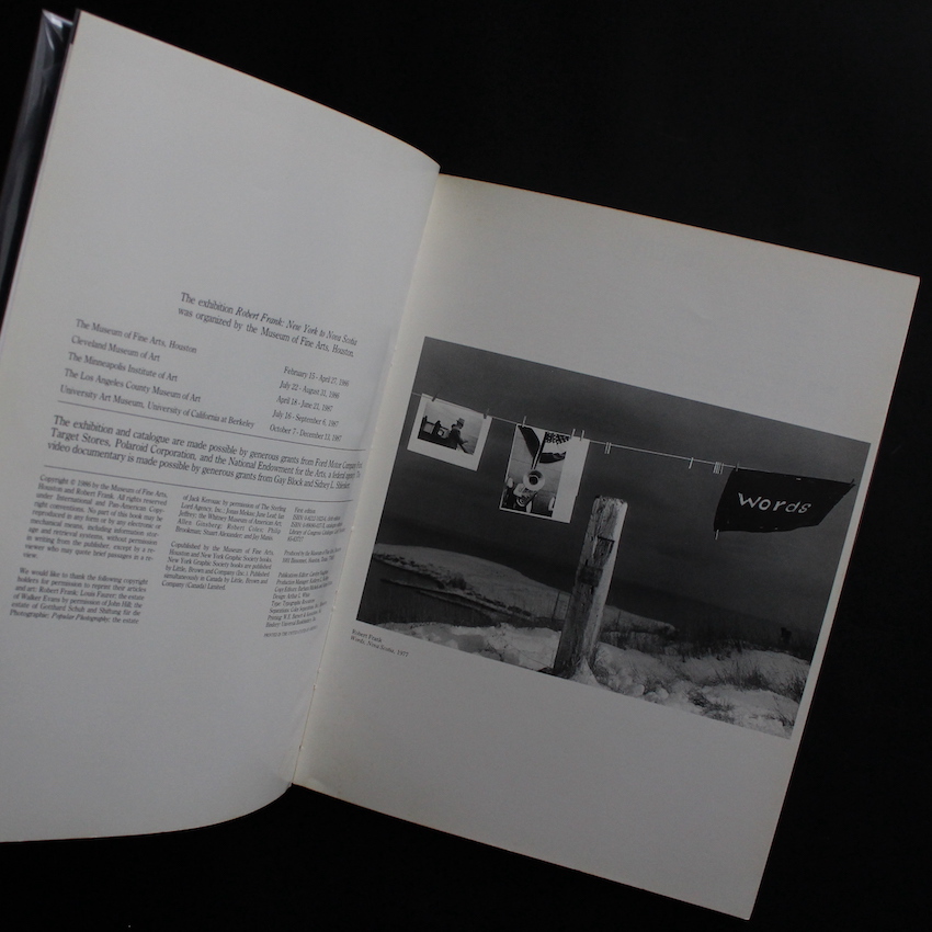 アメリカを代表する写真家ロバート・フランクの作品集『New York to Nova Scotia(Softcover)』。1924年にスイスに生まれ、23歳でアメリカに移住してきたフランクは、戦後伝説のアートディレクターであり、Richard Avedonの師匠としても有名なAlexey Brodovitchに見出され、ハーパース・バザーでも活躍したものの、50年代以降はファッションから離れ、フリーのジャーナリストになります。そして、イギリス・フランスをはじめヨーロッパ各地をたびたび訪れては取材し、その後は自身の感性とイメージそして奨学金をたよりに全米を横断して、知られざるアメリカ社会の裏側をドキュメントした『The Americans』で、写真家としての名を確固たるものとしました。本書は、1986年にヒューストン美術館で行われ、後に全米を巡回した個展時に刊行された作品集。図版メインというよりは、フィルムのスチールやフランクのポートレート、さらにはジャック・ケルアック、ジョナス・メカス、ウォーカー・エヴァンスらによるテキストなどが充実した内容で、2006年にはSteidlより復刻もなされています。ソフトカバー版。