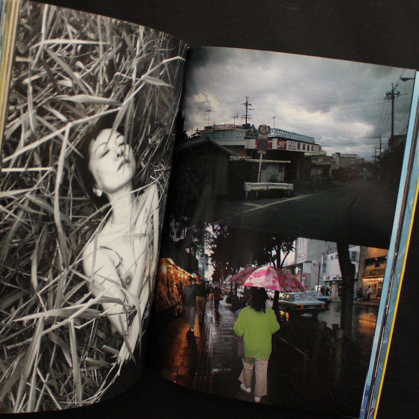 日本を代表する写真家・荒木経惟の写真集『沖縄烈情』。下駄職人でありアマチュア・カメラマンであった父の影響を受けて写真を始め、千葉大学工学部写真印刷工学科を卒業後、電通に就職。在籍中に広告写真を撮る傍ら、会社の機材を使って新たな写真芸術を探求していきます。70年代より『おー日本』『センチメンタルな旅』など、現在まで語り継がれるセンセーショナルな作品を発表、卓越した時に過激なヌード、人情味に溢れたスナップは世界の写真ファンを虜にしています。本書は、1995年に刊行された作品集で、「ラヴ・ラブリンス」とシリーズ名が冠され、翌1996年に発行となった『京都白情』などが続いています。20数年ぶりの沖縄と記載があるので、1971年に発行された『続センチメンタルな旅 沖縄』で撮影に来て以来かもしれませんが、1993年10月と11月に2度訪れた沖縄の写真で構成。懐かしみつつ街や路地を彷徨いながらスナップし、また出会った女性やカップルたちを写し出しています。荒木が思いを寄せたノエという女性の写真のみ用紙が変更されているなど、造本も凝った1冊です。帯欠。