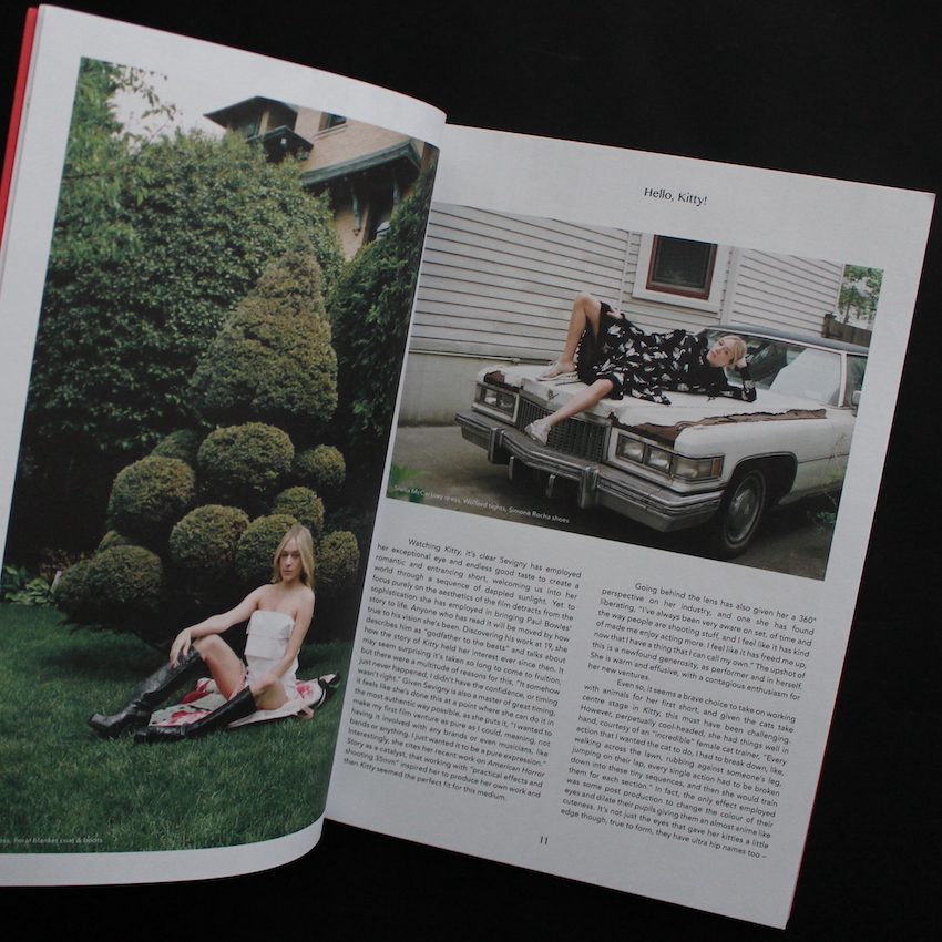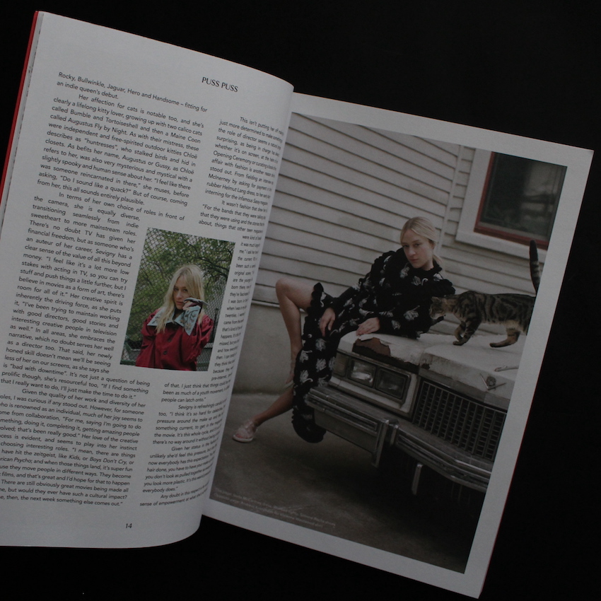 PUSS PUSSは、ファッション、カルチャー、ミュージック、そしてキャットラバー(猫好き)たちのための、2014年から年2回刊行されている雑誌です。他人から影響を受けたり指図されたりせず、自分の道を進む「猫」からインスピレーションを得ており、表紙カバーや本文内の随所の「猫」のモチーフが見られます。本第5号は、ハリウッド女優で、ファッションアイコンとしても絶大な人気を誇るクロエ・セヴィニーがカバーを飾り、クロエと猫たちのポートレートなどなど見応えのあるイメージが連なります。