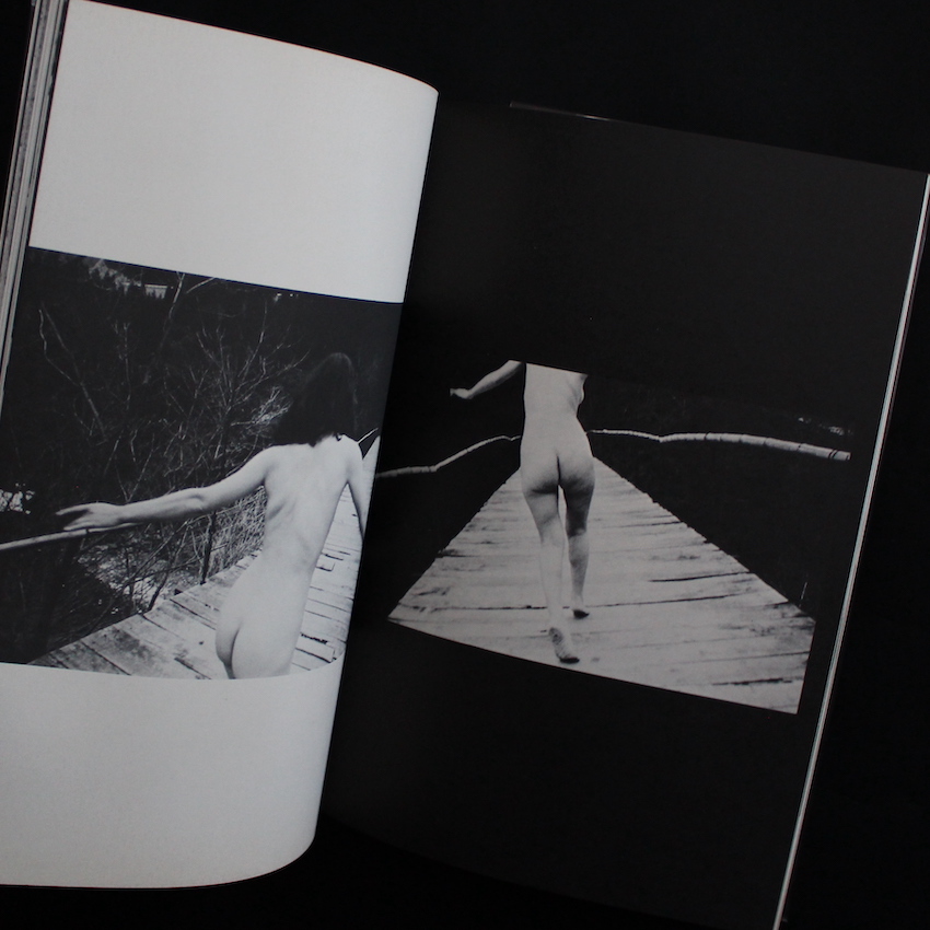 日本の写真家である島峰譲の作品集『自我狂宴』。1960年代半ばよりフォトグラファーとして活動を行い、現在は東京の八王子を拠点に自身の写真事務所を構えて営業を続けています。こちらは、カメラマンとなって10年目にはじめて発表したという処女作で、「女」と「男」というシンプルな2章で構成されています。当時からすでに活躍していた写真家・タッド若松が以下のように寄稿しています。「彼の『女』という写真の中には『動』(Movement)を持つ人間または物体の時間的経過と幅を幾種類も感じさせられるような気がします。(中略)また『男』の中には、パロディーすら感じられます。写真を見るとそれぞれの人に、それぞれの違った時間を、またこの白黒の写真の中に『時間の色』まで感じさせてくれる」。70年代に一時流行った自費出版による作品集らしいユニークな作品の数々です。