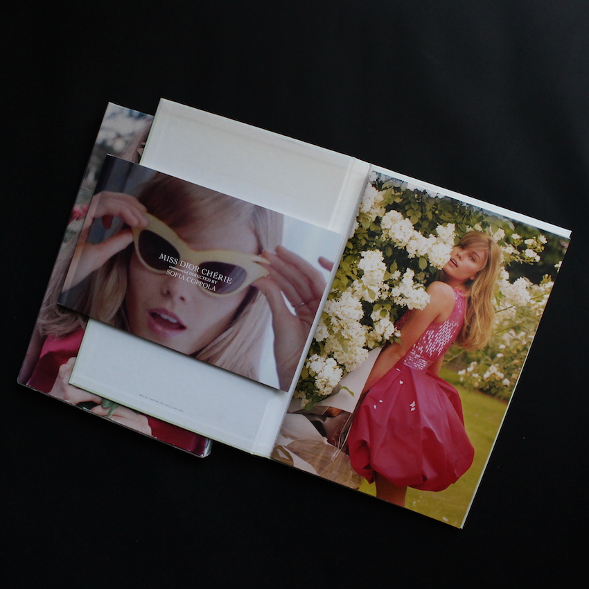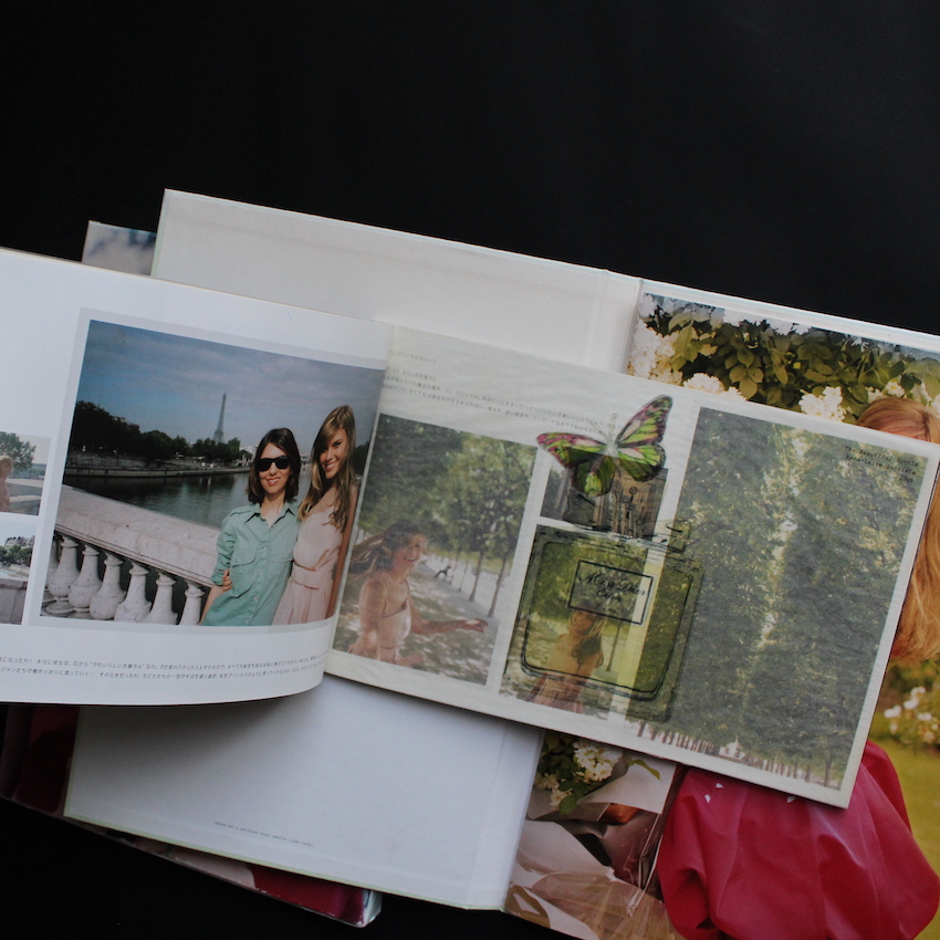 本書は、パリのメゾンブランド「Christian Dior」が手がけるフレグレランス「Christian Dior Parfums」のブランド「Miss Dior Cherie」のコマーシャルブック。この時には、コマーシャルフィルムをソフィア ・コッポラが手がけ、コマーシャル・ビジュアルはティム・ウォーカーという何ともぜいたくなスタッフィング。パリを舞台に、ソフィア自身が辿った街の楽しみ方をモデルの女性が演じ、ソフィアらしいガーリーなイメージとDiorの洗練された美しさが見事に融合しています。一冊はコマーシャルブックで、デザイナー、ガリアーノらのコメントや商品の宣伝のファイルにDVD、もう一冊のブックレットはソフィアとモデルとの1日のオン・オフショットなどが収録され、ソフィア自筆の絵コンテのコピーなども添付されており、こちらもDVD1枚。ソフィア初のCFディレクションとのことです。2500部限定。
