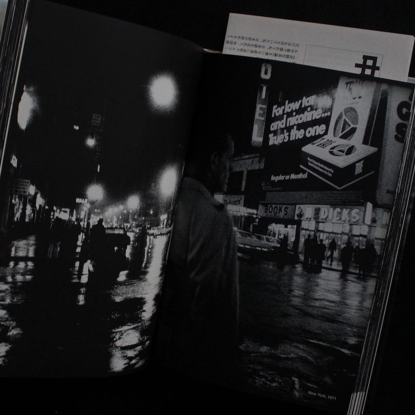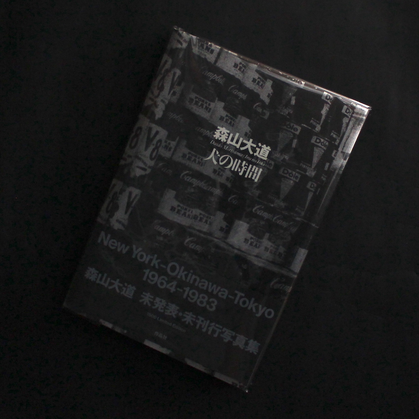 日本を代表する世界的な写真家・森山大道の作品集『犬の時間 / Inu no Toki(With OBI)』。自身の路上をうろつく野良犬に例えた「犬の」シリーズ。アサヒカメラでの連載をまとめたテキストと写真図版からなる『犬の記憶』(1984・1998終章含む)や、近年では、タテ位置の写真のみで構成された『犬と網タイツ』(2015)など。本書は、1995年現在は月曜社(出版社)で、『何かへの旅』『にっぽん劇場』などを刊行し、当時作品社で編集を担っていた神林豊の依頼をベースに始まった作品集で、1年近い歳月をかけて創られた90年代の代表作のひとつ。処女作品集『にっぽん劇場写真帖』以降の、1970年前後に撮影された図版を中心に構成されており、『ニューヨーク』『沖縄』『東京』を舞台に、それらの写真が交差するユニークな編集になっています。巻末には収録された作品の同時期に当たる26歳から45歳までの年代記も英日併記でまとめられ、さらに別冊では『写真よさようなら』以来?となる中平卓馬との対談が収録されています。見応えのある豪華な一冊です。帯付。