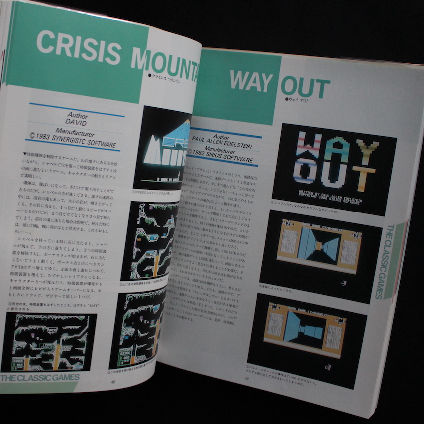 本書は、84年に刊行された作品集『Apple Farm Book For People Who Loves Apple アップルソフトベストコレクション』。現在のApple社の礎を築くことになる77年発売の「Apple 2」。多数のアプリケーションソフトも包含されたことで、プロ向けではなく、一般向けの「パーソナルコンピュータ」としての地位を確立し、以後の躍進のベースとなりました。本作では、そのApple 2の魅力や歴史から、同機種で愛用され、ドラゴンクエストやファイナルファンタジーの開発にも影響を及ぼしたロールブレイングゲーム「Wizardry」や「Utlima」の魅力にもついても画像を用いて紹介。その他にも、Drol、Miner 2049ER、Pinball Construction Set、Raster Blaster、Lode Runner、Zaxxon、Bandits、Stellar 7などなど、ユニークなゲームが、80年代らしいグラフィックを交えて紹介された、初期Appleを知るに大変貴重な一冊です。(少々使用感あり)