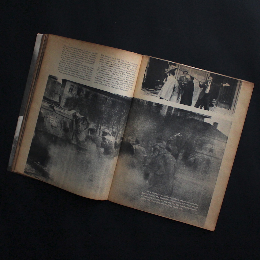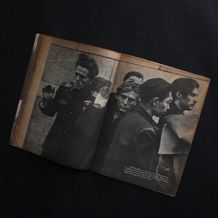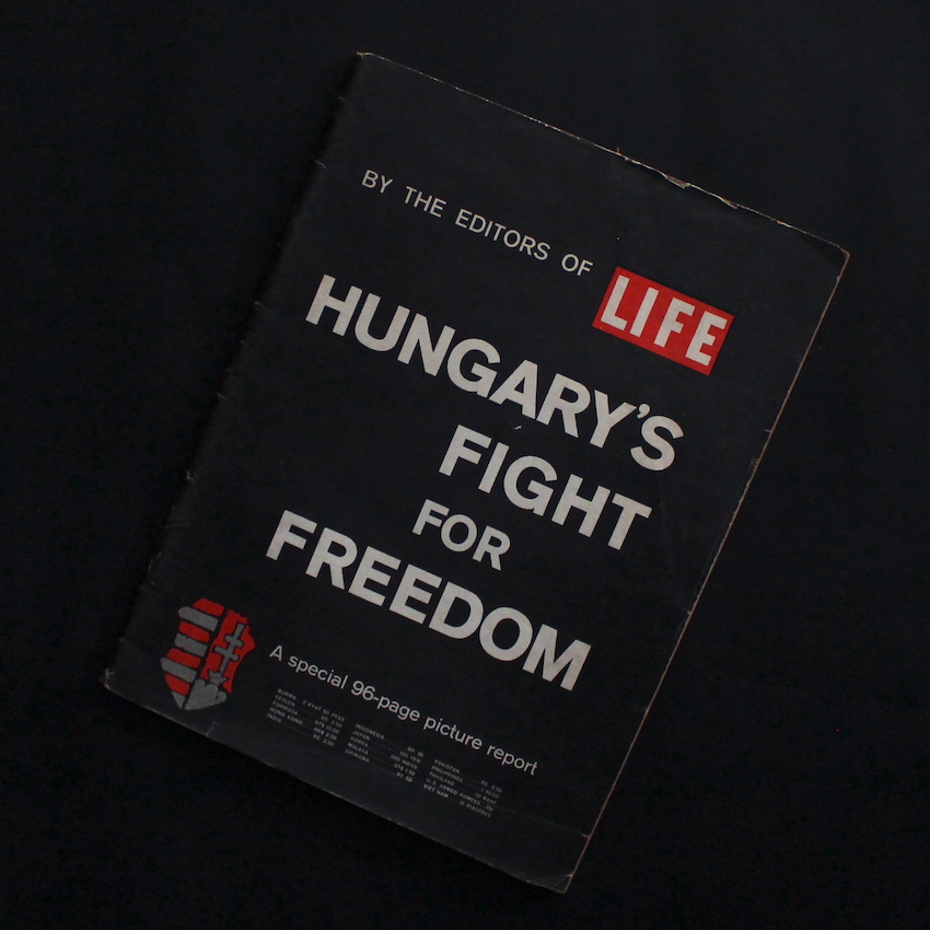 グラフ雑誌の先駆けである『LIFE』の1956年刊行の特別号『Hungary's Fight for Freedom By the Editors of LIFE』。1956年に勃発した「ハンガリー革命」。第二次世界大戦後はソ連の占領下となり、パリ条約による多額の賠償負担を強いられ、さらにはハイパーインフレも起こって国内経済はどん底になったハンガリー。そんな中でソ連による統治が強まり、国民の不満は増大。そして勃発した「ハンガリー動乱」。国民たちが自由を求めて戦い、政府はソ連に助けを求めて戦いは激化し、3000人以上が犠牲となり、20万人以上が亡命をしたとされるデモ活動となりました。その一連が収められたLIFE特集号で、有名な国旗に丸穴が開けられたイメージも収録されています。
