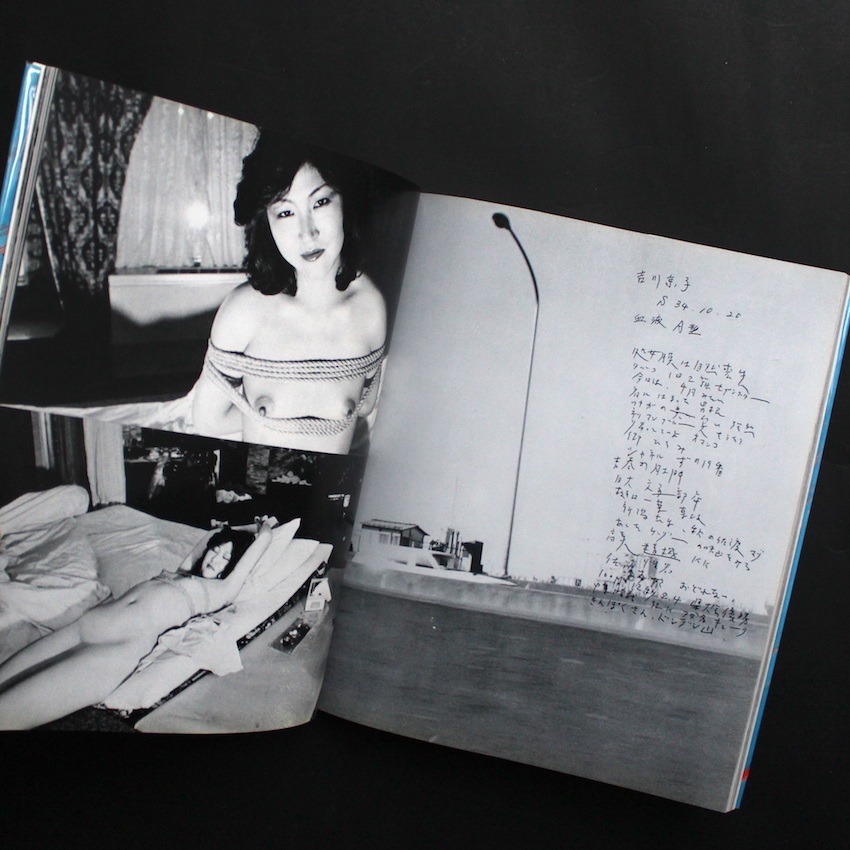 戦後日本の写真界を代表する写真家・荒木経惟の作品集『アラキンZ』。太陽賞を受賞した「さっちん」から始まった60年代、最愛の妻・陽子との出会いから生まれ、「荒木・私写真」の幕開けとも言える「センチメンタルな旅」に代表される70年代、名編集者・末井昭とのコンビによる過激な描写や「エロス」の絶頂、さらには映像表現にも秀でた才能を発揮した80年代、そして陽子の死を受けて、静物や風景を通してよりセンチメンタルな気持ちを描写するようになった90年代と、自身の気持ちや時代の気分に合わせて様々なスタイルを探求し続けきた荒木経惟。近年も右目の視力に苦しみながらも創作活動を続け、エキシビション・写真集の刊行は未だ途切れることがありません。本書は、当時発売されていた栄養ドリンク「アルギンZ」をもじった緊縛写真集。雑誌『S&Mスナイパー』で1979年から連載していた「緊縛写」をまとめたもので、荒木が初めて緊縛を撮った「夏子の夏」など、荒木の緊縛写真の原点ともいえる写真集です。初版・帯付。美品。