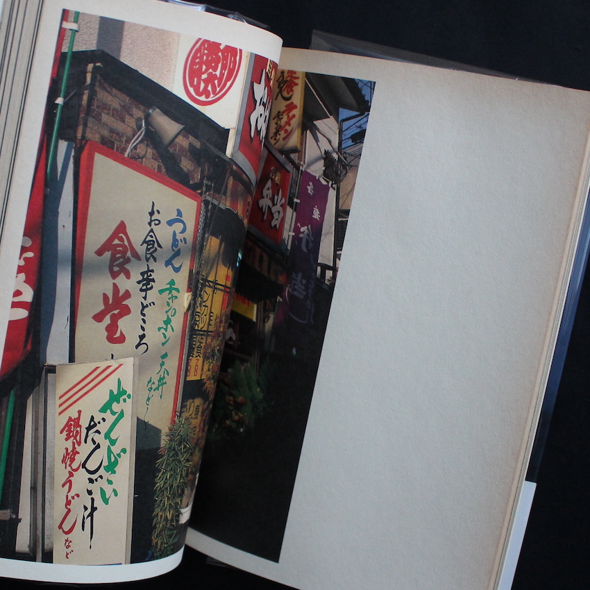 写真家であり小説やエッセイなどの作家としても知られる藤原新也。本書は、新潮社から「藤原新也の現在」というシリーズで写真集や小説、エッセイなど全6冊が発表された中の1冊。藤原の自伝小説に写真がイメージとして挟み込まれた形式で、31編の小説と31点の写真からなっています。タイトルの「鉄輪(かんなわ)」とは、温泉場である大分・別府にある地域で別府八湯のひとつです。北九州の門司港で旅館を営んでいた「私」の家族が、旅館の破産後に移り住んだのが鉄輪でした。門司港を離れるシーンから始まる本書は、「郷里も友も恋も失った高校生の私の、苦く切ない思春期」(版元より)を描いた小説。短い1編とともに、温泉場の風景や街の一角、植物など物語の情景とも言える写真が1枚挿入されています。物語とシンクロするようにノスタルジックな趣を湛えた写真は、縦横をはじめ大小さまざまに配置され、小説のワンシーンを印象付けます。デザインは鈴木一誌。第2刷。