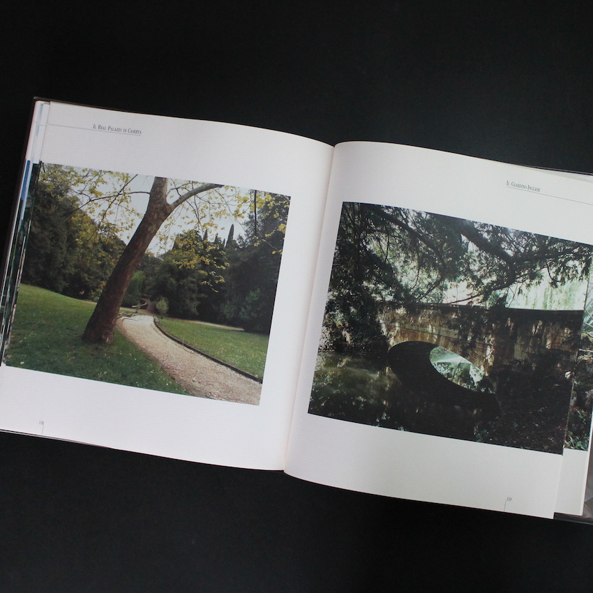イタリアの写真家ルイジ・ギッリの写真集「Il Real Palazzo di Caserta」。ギッリが写真家として生涯貫いた精神「Think for images / イメージを通して考える」。音楽家ボブ・ディランに心酔し、写真家ウォーカー・エバンスを敬愛し、建築家アルド・ロッシや映画監督ヴィム・ヴェンダースをも魅了した生粋のアーティスト。ありふれた日常をユニークな視点で切り取り、鮮やかなカラーリング、卓越したコンポジションをもって捉えられた図版の数々は、私たちを想像の世界へと導きます。ギッリの評価は没後以降特に高まり、近年はロンドンの出版社MACKが精力的に取り上げていることで、世界的に高い注目を集めています。本書は、UNESCO世界遺産にも登録されているイタリアのカンパニア州「ガゼルタ宮殿」の図版で構成された一冊。18世紀後半にヴェルサイユ宮殿を凌ぐべく建設された格式高いバロック建築と、120ヘクタールを超える公園の美しい模様を「自然」「建築」写真のプロフェッシェルが捉えた素晴らしい作品の数々。装幀・プリントのクオリティーも高く、ギッリが生前に残した貴重な一冊。