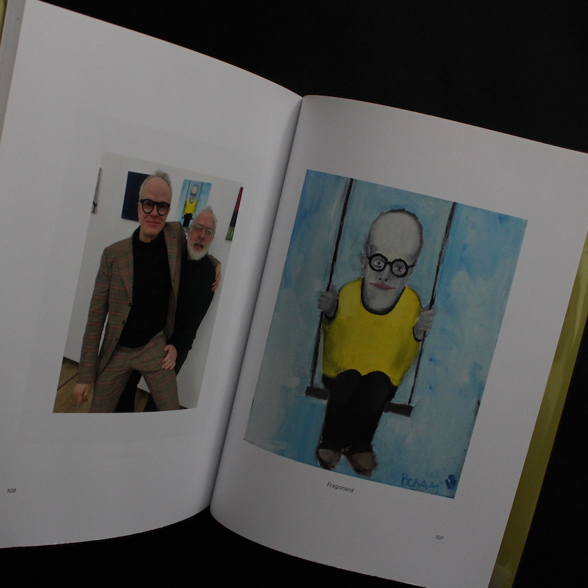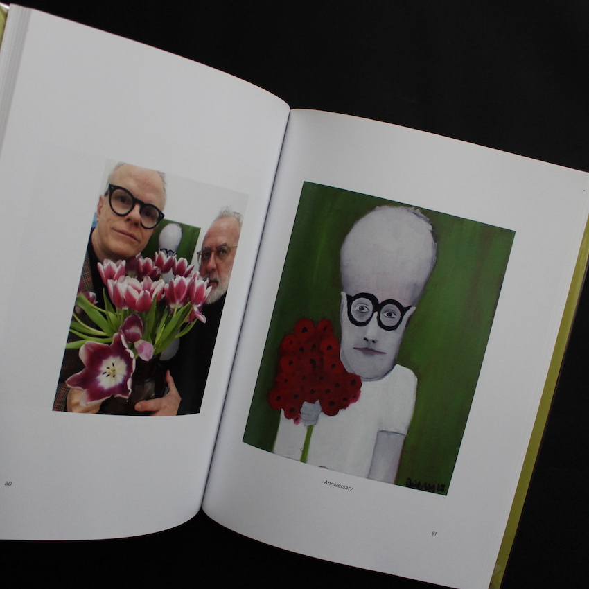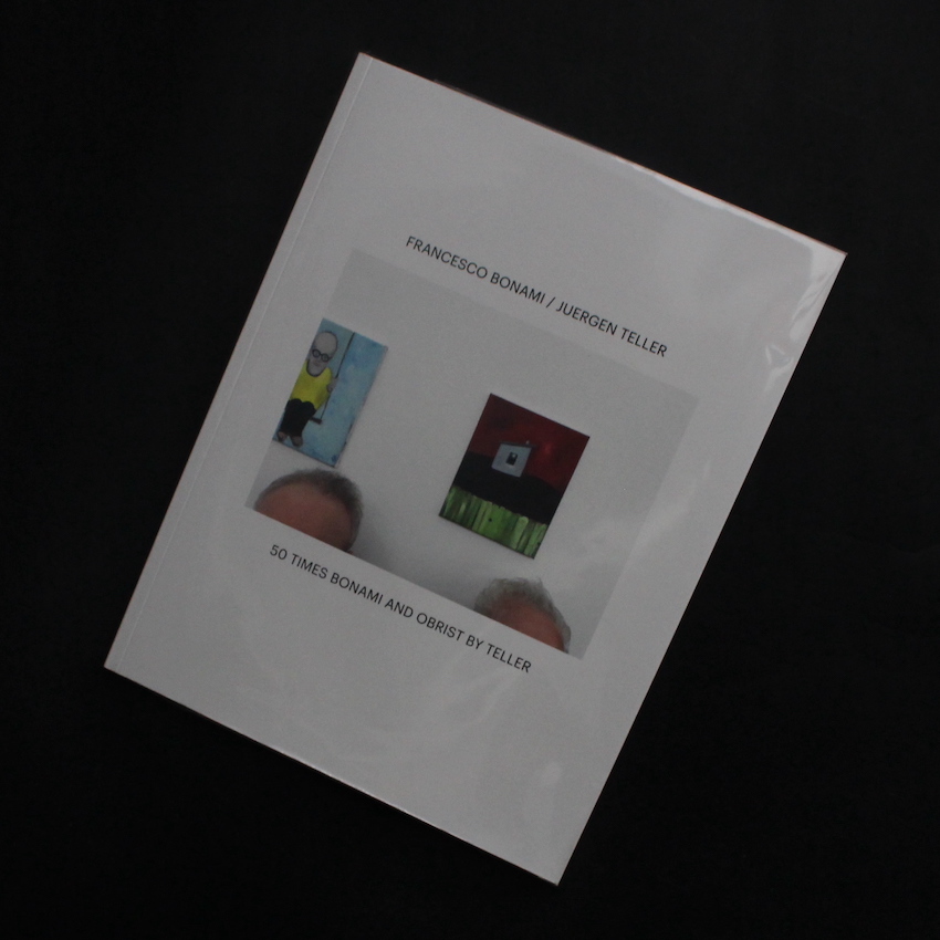本書は現代ドイツを代表するフォトグラファーであるユルゲン・テラーと、世界的に名高いキュレーターで美術批評家でもあるフレンチェスコ・ボナミとハンス・ウルリッヒ・オブリストの3名によるコラボレーション『50 Times Bonami and Obrist by Teller(Signed)』。世界でもっとも影響力のあるアート界の100人にも選ばれるほどの権威で、これまでに300以上のキュレーションを担ったオブリストの生誕50周年を祝う催し。ボナミは当初50名の美術家にオブリストの肖像を描いてもらうよう企画しましたが叶わず、結局ボナミ自身が自ら筆を取り、50ものオブリストの肖像を描写。その展示に招待されたテラーが、肖像画の前にボナミとオブリストを立たせて、様々なポージングでポートレートを撮影するという前代未聞の様相に。。本書では、左側にテラーによる写真、右側にボナミによる肖像画が収録された、何ともユニークな一冊です。写真家サイン入り。