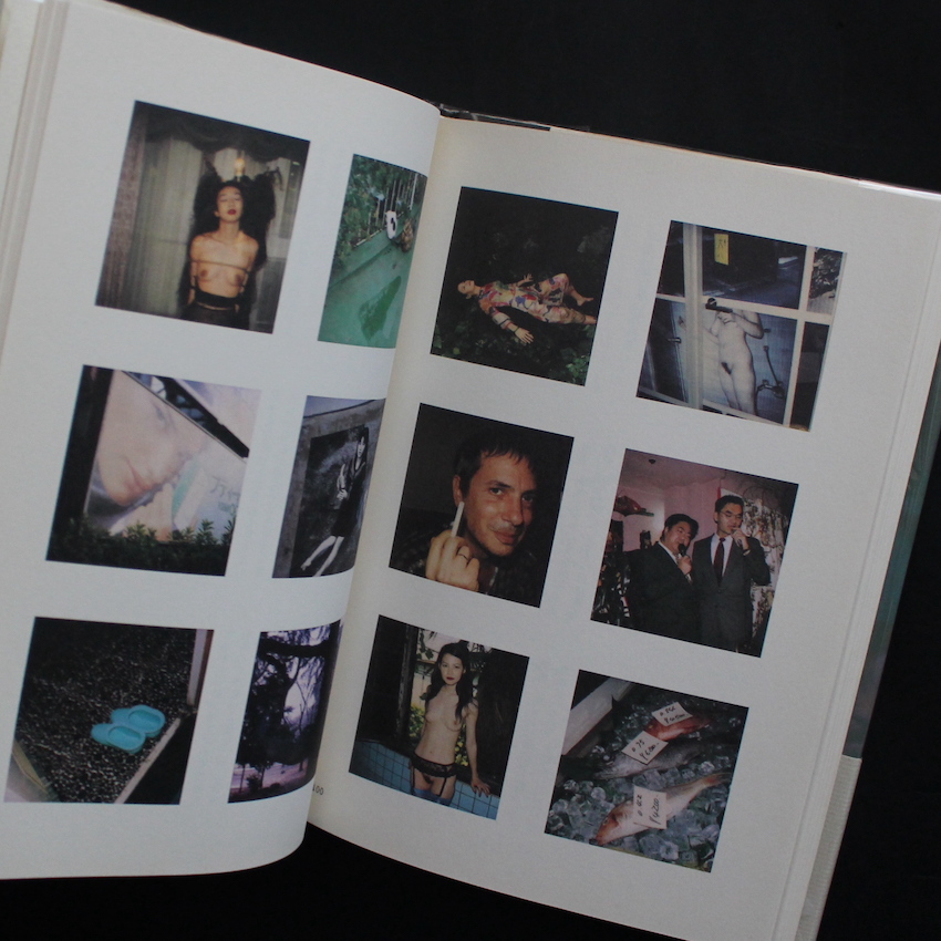 現代日本を代表する写真家・荒木経惟の写真集『ポラエヴァシー(With OBI)』。こちらは2000年に刊行された荒木初のポラロイド作品集。それまでに撮りためられた2,000枚近い図版から選りすぐられた大量のポラロイド。ヌード・着物・緊縛から、竹中直人・中山美穂、チロ、スティル・ライフそしてストリートまで荒木色満載。巻末の写真評論家・飯沢耕太郎との対談も読み応えがあり、荒木が思うポラロイドの魅力がキーワードでまとめられています。「大人になれないカメラ」「秘密の匂い、危険な匂い」「すべてを『いま』にさせる」「女と人生は真四角で撮るように」などなど。以下荒木のコメントより「オレはよく『おイタ』というけれども、ポラには『おイタ』のセンスがあるんだよ。やんちゃな気分ってあるだろう。幼年から少年くらいの感覚の快感がある。ポラは大人になれないからね。だから「おイタ」にぴったりでさ。撮ってるとワクワクしてくんの」。帯付。写真家サイン入り。