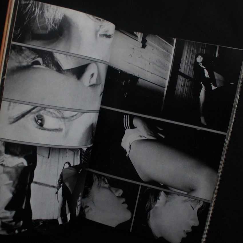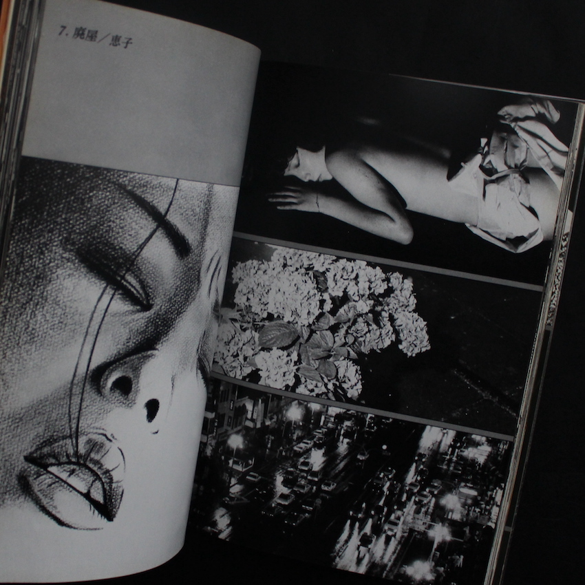 日本の漫画家で、映画監督・脚本家としても活躍する石井隆の作品集『名美を探して 石井隆写真集 / ダークフィルム』。1946年宮城県生まれ、早稲田大学在学中よりライターとして活動し、1970年代半ば頃より『増刊ヤングコミック』に「夜がまた来る」を発表、劇画ブームの火付け役の一人となり、以来様々な誌面で作品を発表するとともに、多くの画集も発表。女性の官能的な美しさ、それに対する孤独や絶望。「女性」を通じて「性」や「死」の鼓動を描き続けるアーティストです。本書は、1980年に白夜書房より刊行された作品集で(同時期に白夜書房からは、荒木経惟の『偽ルポルタージュ』や、倉田精二の『Flash Up』も発表されています)、『漫画タッチ』で発表されていたモノクログラビア頁での連載をまとめた一冊で、装幀・撮影・構成・本文レイアウトまで、すべて石井によって手がけられています。「モンタージュの手法を駆使して構成した石井隆のダークな官能の世界!」(帯より)。帯欠。