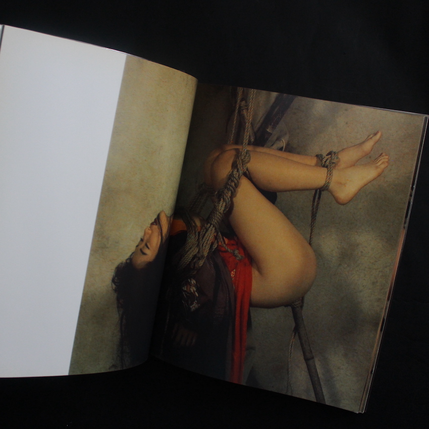 日本の写真家・五味彬の作品集『緊縛寫眞』。1953年東京都生まれ、日本大学芸術学部写真学科卒業後、フランスに渡り、数年間修行した後83年に帰国。その後は、『流行通信』や『ELLE JAPON』などのファッション誌で活躍し、90年代以降は、デジタルメディアを活用した革新的な表現で注目を集め、代表作には、日本人女性100人の身体的特徴を記録した写真集『YELLOWS』や、アメリカ各都市で女性たちを撮影し、肌の色や体型、文化的背景の違いを浮き彫りにした作品群『AMERICANS』などがあり、CD-ROM形式でも発売されました。近年は、生成AIを活用した作品制作にも取り組んでおり、デジタル技術と写真表現の融合を追求し続けているフォトグラファーです。こちらは、90年代初頭に刊行されたカラーの緊縛写真で構成された異色作です。