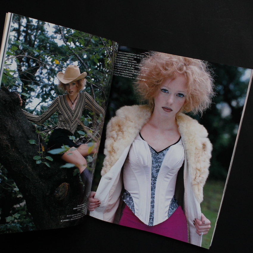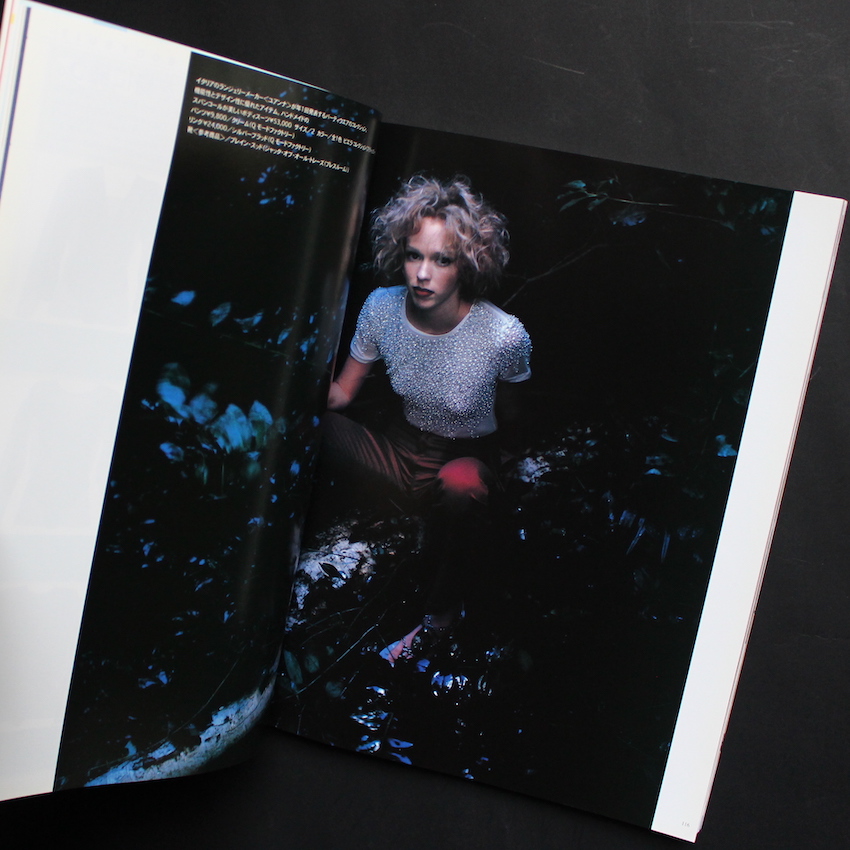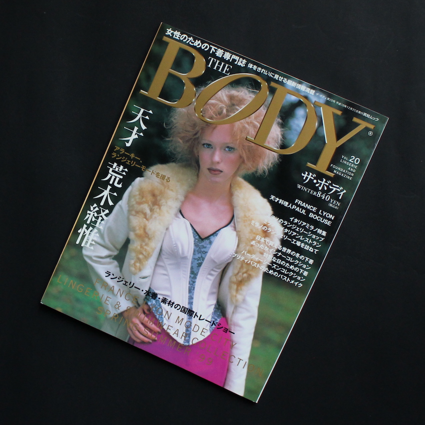 本書は、共同プレス社が刊行していた女性のための下着専門誌『The Body』の1998年冬・通巻20号。海外のモデルたちが、国内外のランジェリーを見に纏い、女性の美しさと下着の魅力を、様々なイメージ・図版を通して紹介する同誌ですが、本号はめずらしく荒木経惟撮影による「In a Garden」が収録されています。「アウターで着るモードランジェリー -静寂な冬空の彼方で-」という副題で、8図版掲載されています。