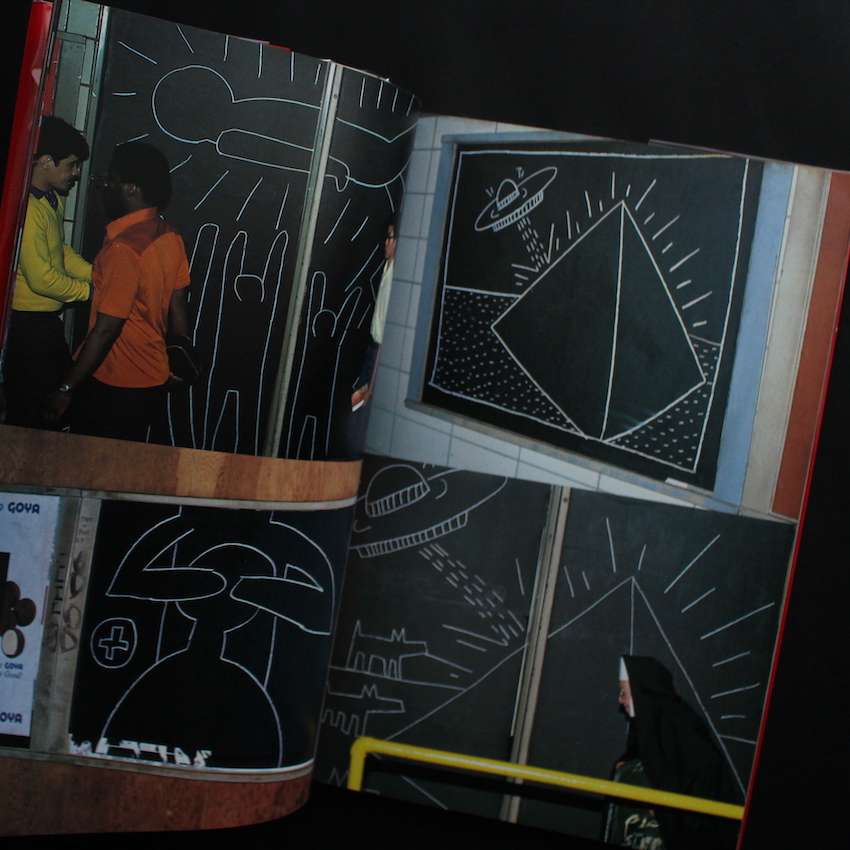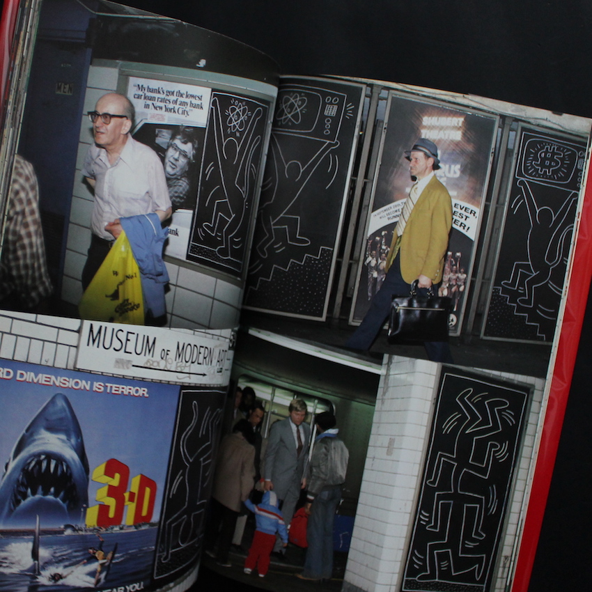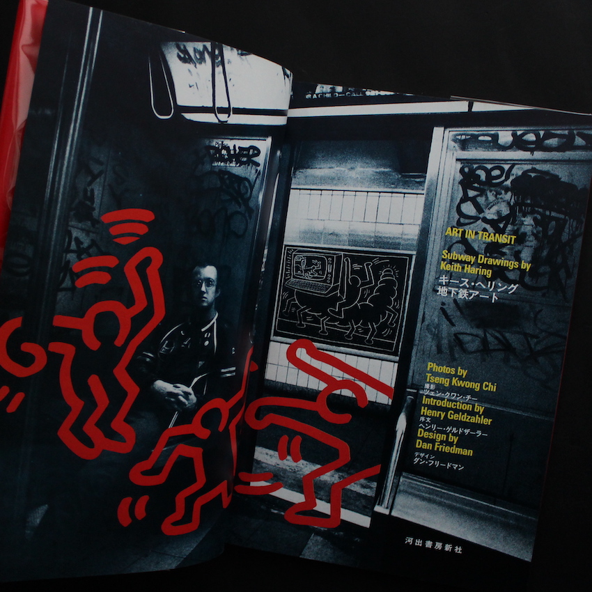 アメリカの画家であるキース・ヘリング(1958-1990)の作品集『地下鉄アート / Art in Transit(OBI)』。80年代のニューヨークのストリート・アートシーンを席巻したものの、バスキアと同じく短命でこの世を去った伝説のアーティスト。エイズによる合併症で31歳と若さで亡くなられているものの、その短い期間で、ニューヨークでの地下鉄の広告掲示板に書かれたイラストは、瞬く間に世間の注目を集め、そのパフォーマンスも含めて「ニュー・ペインティング」と評されました。日本でも、80年代初頭より、BRUTUSでの特集、神宮前・キラー通りで行われた公開ペインティング、コンドマニアとのコラボレーションなど、今なお記憶が蘇るほど、鮮明な印象として私たちの心に宿っています。こちらは、アメリカで刊行された『Art in Transit』の日本語版として刊行された作品集で、ヘリングの作品とパフォーマンスが写真集のごとくまとめられた一冊となっています。帯付。