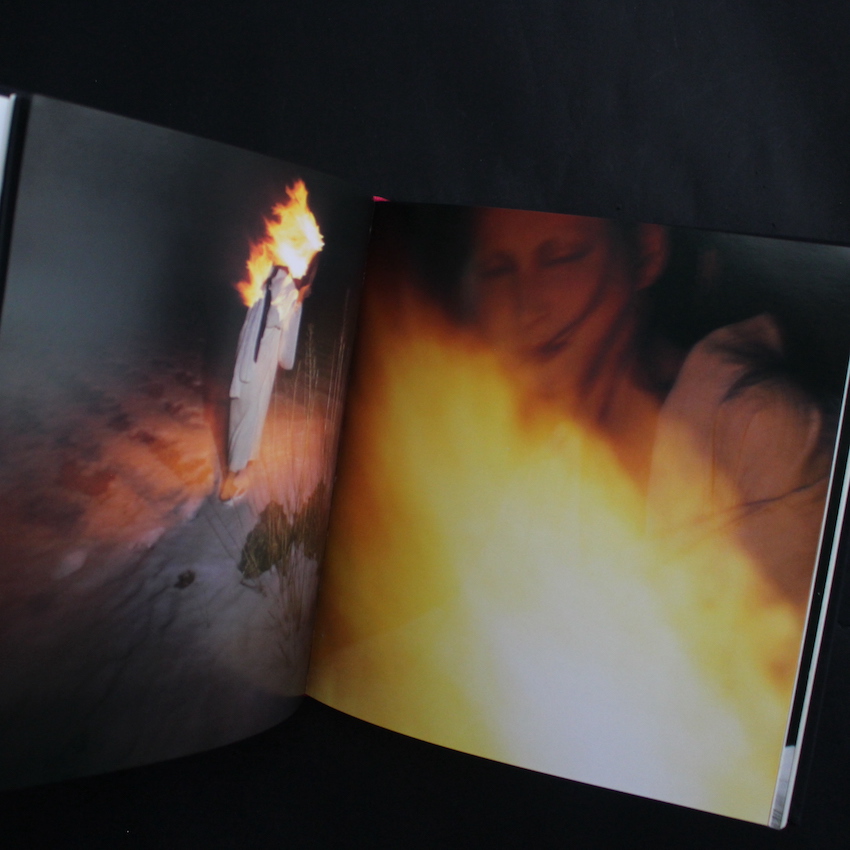 日本の女性写真家・大石芳野の写真集『花黙し / Silent Flowers』。日本大学藝術学部写真学科で写真を学び、学生時代に訪れたベトナムで強い衝撃を受け、卒業と同時にフリーランスのドキュメンタリー写真家として世界を撮影してきた大石芳野。戦争や内乱といった極限状況を経験した人々のその後の姿を記録し続けています。本書は、大石の最初の写真集『来ればよいのだ春などは』(1973)と同様に“日本の女”を題材にした一冊。4名のモデルとの撮影は5年の月日を要したそうですが、顔を白塗りし、着物をはだけさせ上半身を晒した女性たちが、古民家や雪景色、桜の木など幻想的なシーンとともに独特な世界観をもって写し出されています。「『女って何なのだろう』と素朴に考え始めたのは、十代の頃でしょうか。カメラを手にし、取材などで海外旅行を重ねるうちに、『女』、ことに『日本の女』が持つ情念を何とか映像化したいという強い欲求にとりつかれてきました。(中略)試行錯誤の結果生まれたのが、この『花黙し』です」(あとがきより)。輸送箱はなし。