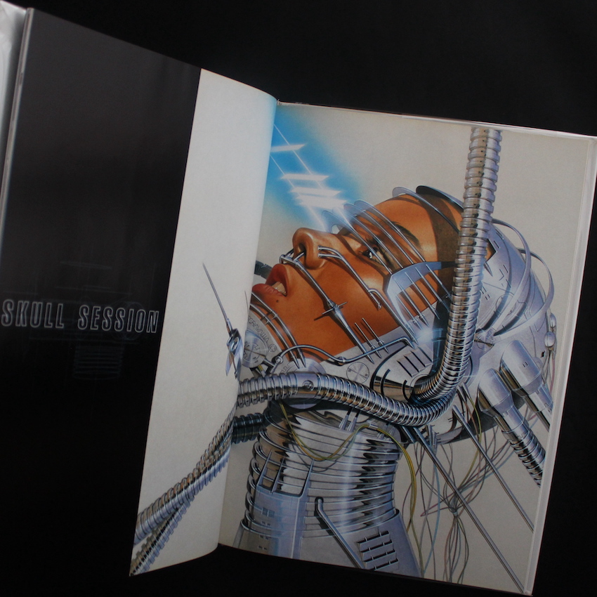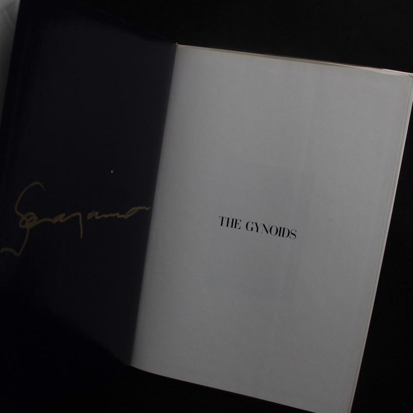 日本を代表するイラストレーター・空山基の作品集『The Gynoids(Third Printing, Signed)』。1947年愛媛県生まれ、中央美術学園デザイン科を卒業後、広告代理店旭通信社(現アサツーディケイ)に就職した後、1972年にはフリーランスに。メタリックなロボットに女性のエロスを融合させた「セクシー・ロボット」が話題となり、83年にはファーストブック『Sexy Robot』(玄光社)を発表、その名が一気に知れ渡ります。90年代以降は、アメリカをはじめ海外からの注目が高まり、ソニーが1999年に発表したペット型ロボットシリーズ「AIBO」はコンセプトデザインを担当、MoMAのパーマネントコレクションにも収蔵されました。その後も、コマーシャルやブランドとのコラボレーションなど、その活躍は衰えることのない空山ですが、本書は、サイボーグ美女たちをテーマにした作品集。細く締まった腰、長い脚、ピンヒール、突き出した胸元などなど、フェティッシュな要素満載。官能的でありながらも暴力的なイメージの数々です。第3刷。