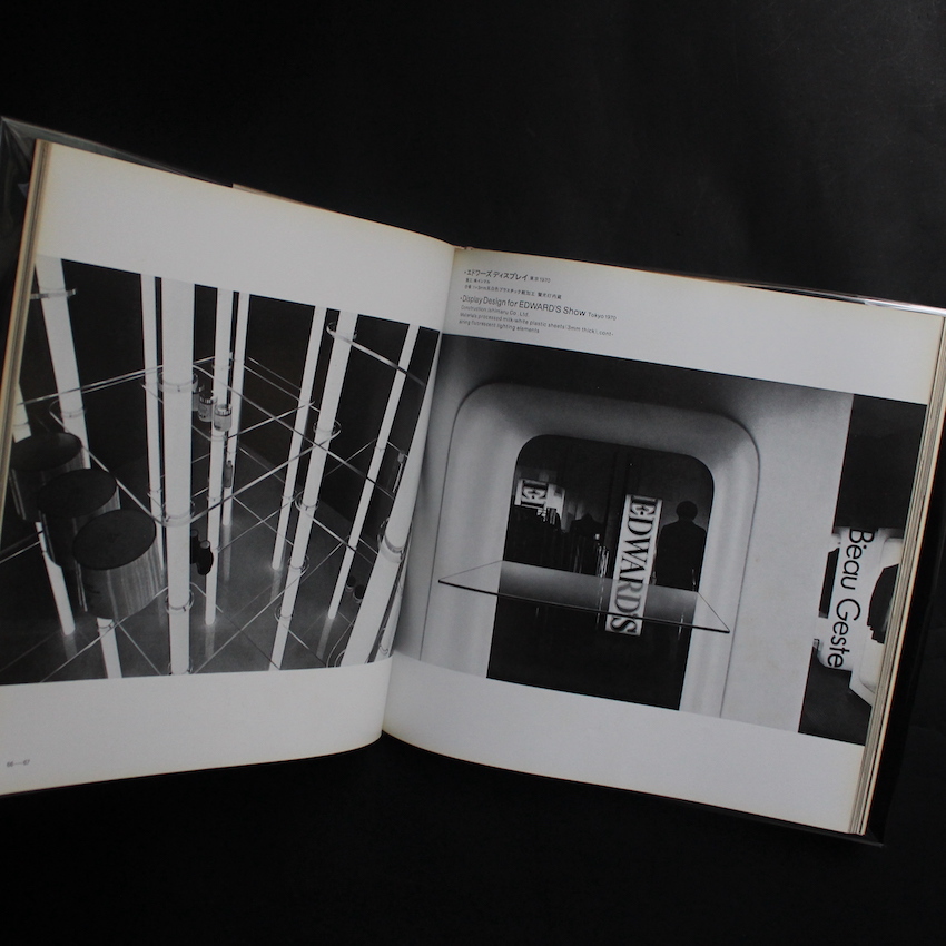 戦後日本を代表するインテリアデザイナーである倉俣史朗(1934-1991)の作品集『倉俣史朗の仕事 / The Work of Shiro Kuramata 1967-1974』。工業デザインと芸術の間で、日本と西洋の美の融合をはかり、独自の世界観を創出することで、国内のみならず海外からも高い評価を得るに至った倉俣史朗。「イッセイ・ミヤケ・ブティック」を始めとした店舗設計から、「シング・シング・シング」「ビギン・ザ・ビギン」さらには88年の「ミス・ブランチ」などの家具デザインも秀逸。巨匠エットレ・ソットサスにも認められ、ソットサスが創設したデザイン・コンソーシアム「メンフィス」の創設メンバーにもなりました。こちらは、三愛の宣伝課から独立して、65年に自身の事務所を設立してから75年までの倉俣の貴重なアーリーワークが収録された作品集。初めて建築に携わった「エドワーズ」から、西武百貨店やカネボウのディスプレイ、家具などのプロダクトから、ミルクボーイのブティックデザインなどなど、モノクロで統一された70年代らしい趣のある写真集仕立ての一冊。