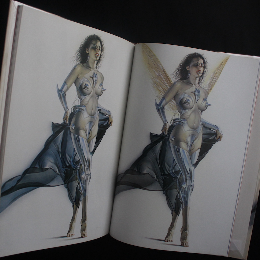 日本のイラストレーター・空山基の作品集『拷問 / Torture(Hardcover, Signed)』。写実的なエアブラシ技法を駆使し、金属的な質感と官能性、時に暴力性をも融合させた独自のスタイルを確立、代表作「セクシーロボット」シリーズは国内外で知られる名作。その影響力は、映画『アイアンマン』のデザインや、ソニーの犬型ロボット「AIBO」の初代デザインにも及んでいます。本書は、空山基の代表的な作品集の一つであり、フェティッシュ・アートの集大成とも言える一冊。タイトルの「Torquere」はラテン語で「ねじる」「歪める」を意味し、作品全体に漂う官能的な緊張感や、肉体と機械の融合といったテーマを象徴しています。また、金属的な質感を持つ女性型ロボットや、サイバーパンク的な要素を取り入れたイラストレーションが多数収録されており、空山の緻密な描写と独特の世界観が堪能できる作品集です。ハードカバー版。