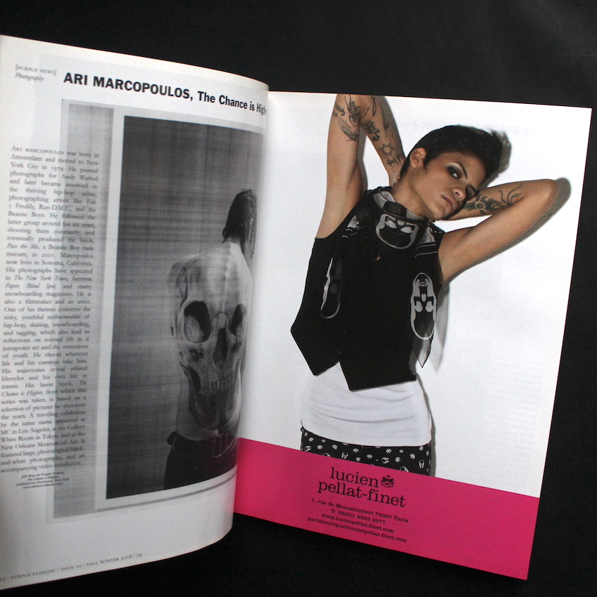 インディペンデントならではの高感度な誌面作りで90年代のファッション/カルチャーシーンのひとつの指標となり、今なおファンの多いフランスの雑誌『Purple』。エレン・フライスとオリヴィエ・ザームによって1992年に創刊されたこの雑誌は、2004年に発行は終わりますが、エレンは『Purple Journal』、そしてオリヴィエは『Purple Fashion』をそれぞれ始めています。本書2008-09秋冬・通巻10号は、カバーはMario SorrentiとKate Mossという豪華カップルで、本文内でもソレンティによるポートレートが収録されている他、ホンマタカシ 「Tokyo Houses」、Glen Luchfordに「Malgosia Bela」、Richard Kern「New York Girls」、Mark Borthwcik「French Woman」など見どころ満載のビジュアルに加えて、荒木経惟のインタビューなども収録されている貴重な一冊となっています。ポスター及びハーモニー・コリンによるTVスクリーン写真集『Pigxtras』付属。