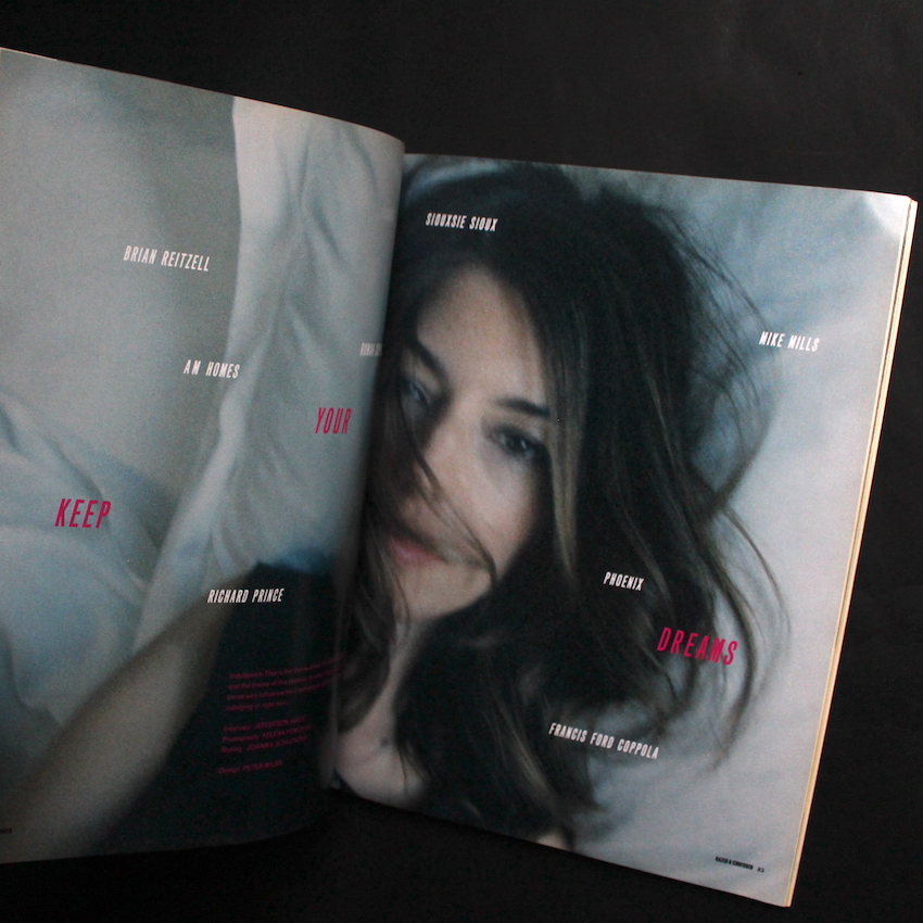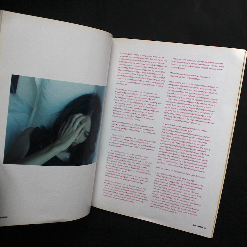 本書は、ロンドン発、写真家のRankinとJefferson Hackによって立ち上げられたファッション・カルシャー誌『Dazed & Confused』の2006年11月号(Vol2. Issue # 43)で、特集は「Sofia Collopa Special」。モデル・女優・映画監督・ファッションデザイナー・プロデューサーなどなど、多彩なフィールドで活躍を続けるマルチ・アーティストであり、ファッションのアイコン的存在としても人気の高いソフィア・コッポラ。近年は『Sofia Coppola Archive 1999-2023』など作品集の刊行でも話題になりましたが、本書では、15ページほどソフィアの特集ページが組まれており、ポートレートからインタビュー(英語)などが収録されています。