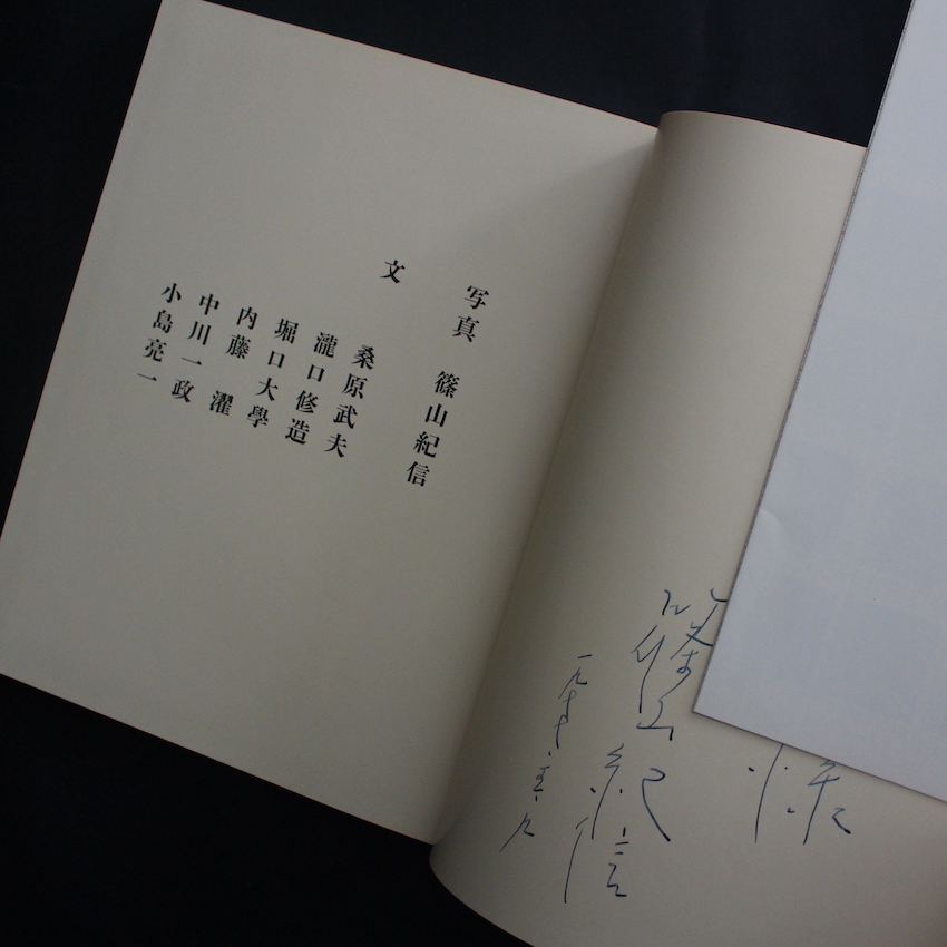 日本の写真家・篠山紀信の写真集『パリ / Paris(Signed for Previous Owner)』。『オレレ・オララ』(1971)『家』(1975)『晴れた日』(1975)等、初期70年代に現在まで語り継がれる数々の傑作写真集を刊行している篠山紀信。本書は、1977年に刊行された作品で舞台は「パリ」。エッフェル塔、凱旋門といった著名な歴史的建造物や観光地はことさら避けて、カルチェラタン、レ・アール、マレー、モンパルナス、モンマルトルといった庶民の長い歴史が物語る古きよきパリの街並が収録されています。全ページ鮮やかで深みのあるカラー図版で構成されており、木村伊兵衛の名作写真集『パリ』と見比べてみるのも興味深い作品の数々。題字は中川一政、装幀は鶴本正三、桑原武夫、瀧口修造ら6名のテキスト。帯欠。謹呈署名入り。