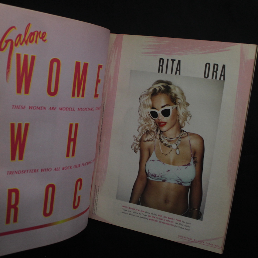 2012年創刊の『Galore Magazine』の第2号で、特集は『Women Who Rock!』。以前は『Lovecat』という名で人気を誇ったファンジンですが、ファッション、ビューティー、ポップカルチャー、ミュージック、ヘルシーなどのテーマを取り上げ、現代のボムシェル女性に向けて、個性や自己表現を大切にするコンテンツを提供しています。著名アーティストとのコラボでも話題で、本号の表紙を飾るのは「Victoria's Secret」の「エンジェル」の一人であったシャネル・イマンで、Ellen Von Unwerthが撮影を行なっています。