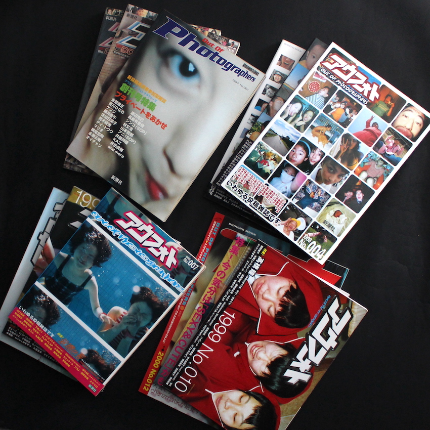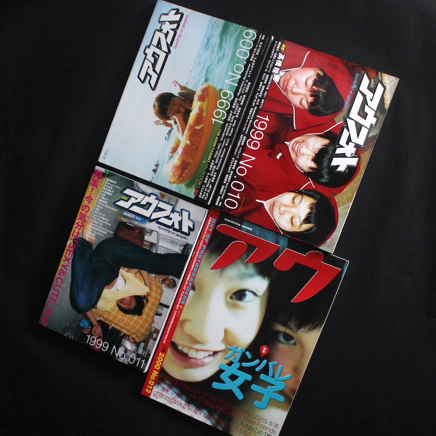 本書は、米原康正が編集を担っていたアウトサイダー・カルチャー雑誌『Out of Photographers』通称『アウフォト』の創刊から12号(全13号)。プロの写真家でなく、素人の読者が撮影した写真を紹介する、言わば雑誌版「Instagram」とも言える、投稿型雑誌の先駆け。「普通の人が撮った写真にはこれも前の質問でも説明した通り、写真(作品)を撮ろうという意識がない分(撮られる側も同様)ドキュメントとして良質なものが多い。それを構成、再構築することにより、今という時代をリアルに浮き上がらせる「何か」を発見できる」(米原のコメントより)。すでに「コギャル」をメインに、彼女たちが撮ったチェキやプリクラを紹介する読者参加型雑誌『egg』の編集で大成功を収めていた米原が、さらに幅広いターゲットと読者を想定して、新潮社に持ち込んで企画されたのが本誌です。毎号著名な写真家も参加したりしていますが、創刊号では、荒木経惟をはじめ、渡辺克巳や長島有里枝、さらには『Dune』などの編集者・林文浩も参加しており、2000年後の若者の「リアル」が見えるユニークなイメージの数々です。(13号及び特別号はなし)
