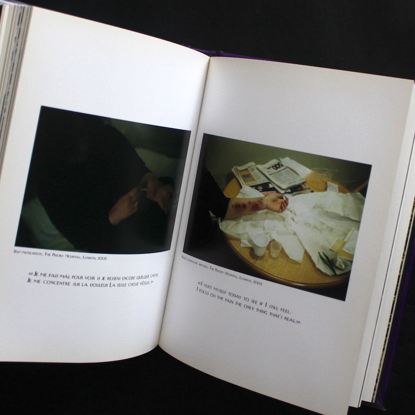 20世紀を代表するアメリカの女性写真家であるナン・ゴールディン(1953-)の作品集『Soeurs, Saintes et Sibylles』。家族や社会との葛藤を繊細に写真に描写してきたゴールディンですが、本書は2004年にパリで行われたエキシビジョンを機に刊行されたカタログ作品集。最初は、彼女の姉Barbaraの物語から始まります。幼少から反抗的とみなされ、多くの精神病院に入退院を繰り返し、最終的には列車に飛び込んで命を絶つという悲劇的な経緯をたどる姉バーバラ。次は自身の自伝的内容へと続き、薬物依存と鬱のために精神病院へ入院した経験も綴られています。さらには、父によって塔に閉じ込められ、その信仰を貫いた結果、斬首されるも雷によって最後は父が罰せられるという逸話、聖Saint Barbaraの伝説も本文に織り込まれています。姉妹の物語と聖書的・神話的図像が重ね合わされ、女性、そして性と自己表現、そして囚われからの解放への問いへと昇華されていくストーリー。私小説のごとく単行本のようなスタイルにしたデザインも素晴らしい一冊です。テキストはフランス語。