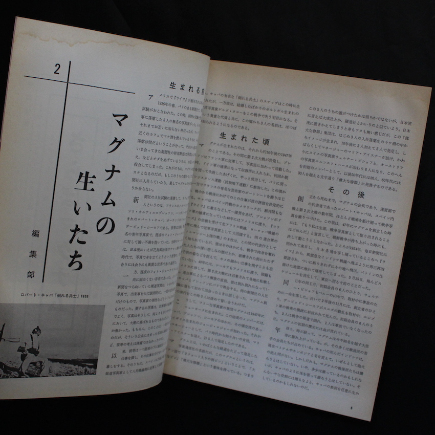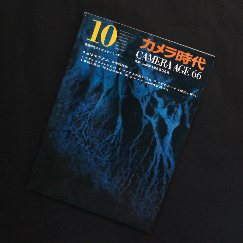 本書は、1960年代半ばに写真同人社が発行していた写真誌『カメラ時代 1966年10月 / Camera Age October 1966(特集 - 川田喜久治自選作品集)』。前身は1955年創刊の『フォトコンテスト』。写真同人社と言えば、東松照明のファーストブック『〈11時02分〉 Nagasaki』の版元で有名ですが、翌67年に会社が傾いてしまい、この雑誌もおそらく1967年以降は発行されていないようです。66年度は、奈良原一高(1月)、長野重一(2月)、細江英公(3月)、佐藤明(4月)、今井寿恵(5月)、高梨豊(6月)、東松照明(7月)、石元泰博(8月)、横須賀功光(9月)と、当時の新鋭写真家の「自選作品集」と題した特集が組まれており、本書はその10月号で川田喜久治特集。30ページ強に渡って図版及び論考が収録されており、その他、内藤正敏「日本のミイラ」、多木浩二「石の文化」、シンポジウム<日本1966>(構成:和田勉)などの作品も素晴らしく、グラビア印刷も惹かれ る一冊です。(前半数ページ縁に少濡れシミあり、図版良好)