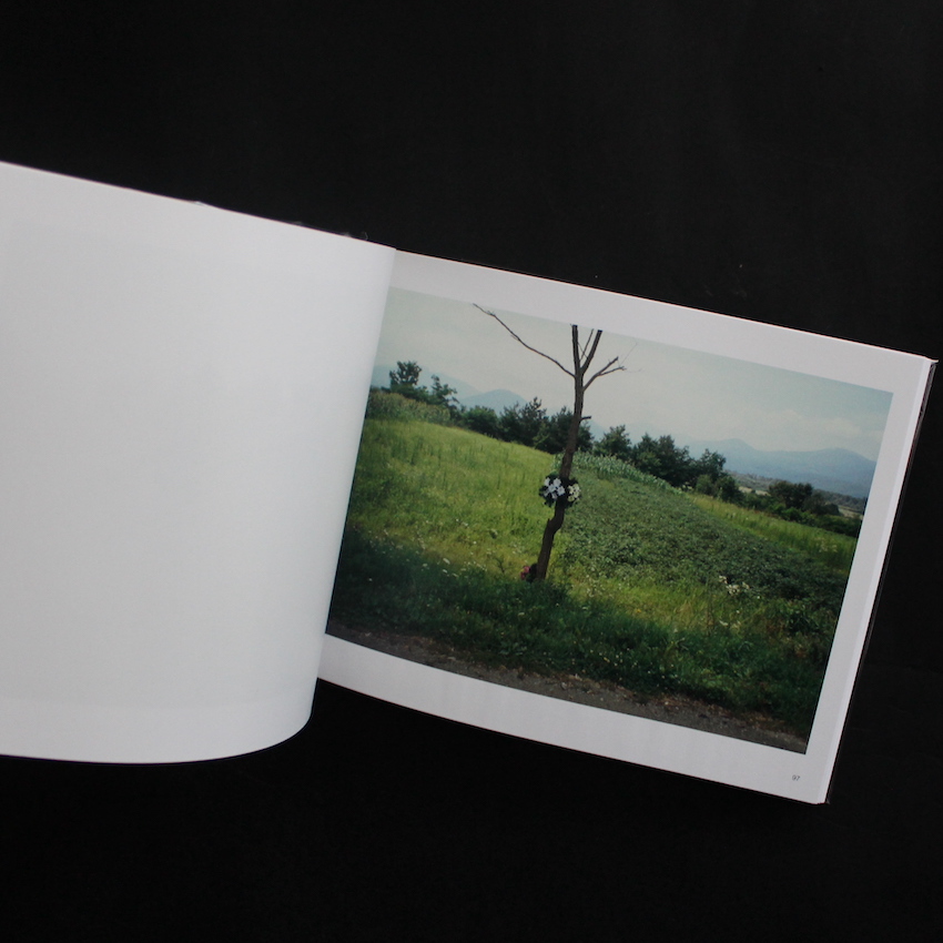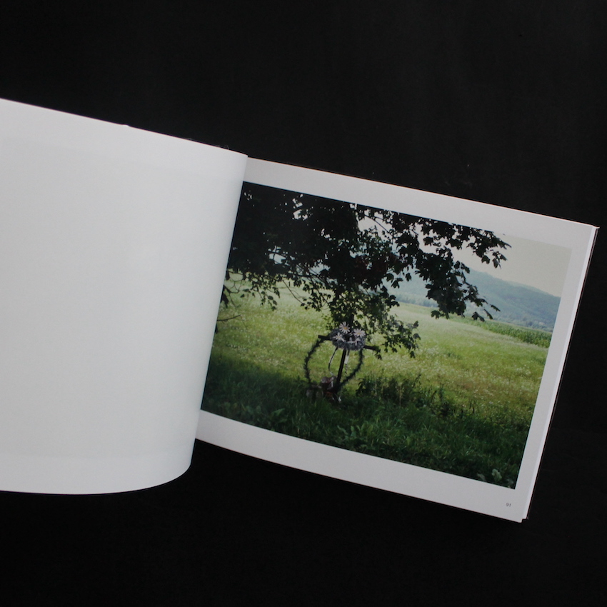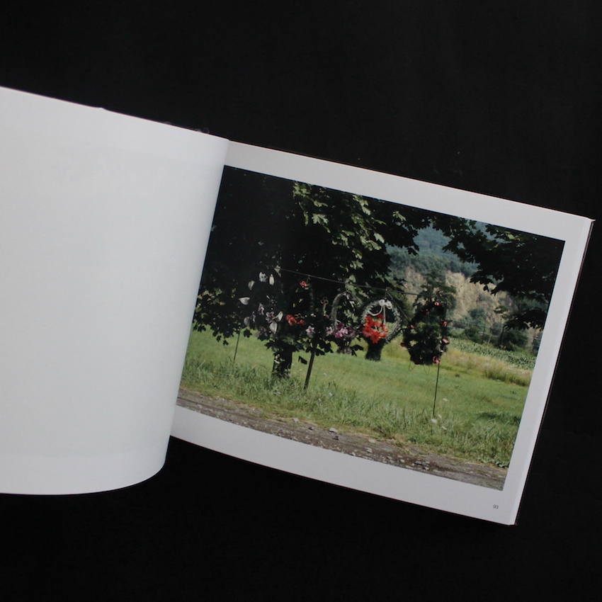 ドイツの現代美術家であるロマン・シグネールの作品集『Karpaten / Carpathians』。2024年にComme des Garconとのコラボで話題になったアーティストで、時間、動き、偶然性などをテーマに、彫刻やインスタレーション、さらにはパフォーマンスなど多岐にわたる手法で表現しているシグネール。本書は、シグネールが2005年にウクライナとルーマニアのカルパチア山脈を旅した際に撮影した写真で構成された作品集。旅は、道端に立ち寄りながら進められ、撮影された写真は主に2つのテーマに分類されます。一つは、家庭で育てられた果物や野菜などの農産物が丁寧に陳列された様子。もう一つは、交通事故の犠牲者を追悼するために設けられた花や十字架、リースなどの記念碑です。これらの写真は、風景の中に配置されたカラフルな被写体を、一定の距離から撮影するという共通の構図を持ちながらも、生命の豊かさと喪失の悲しみという対照的なテーマを浮き彫りにしており、シグネールのユニークな視点が垣間見れる一冊です。