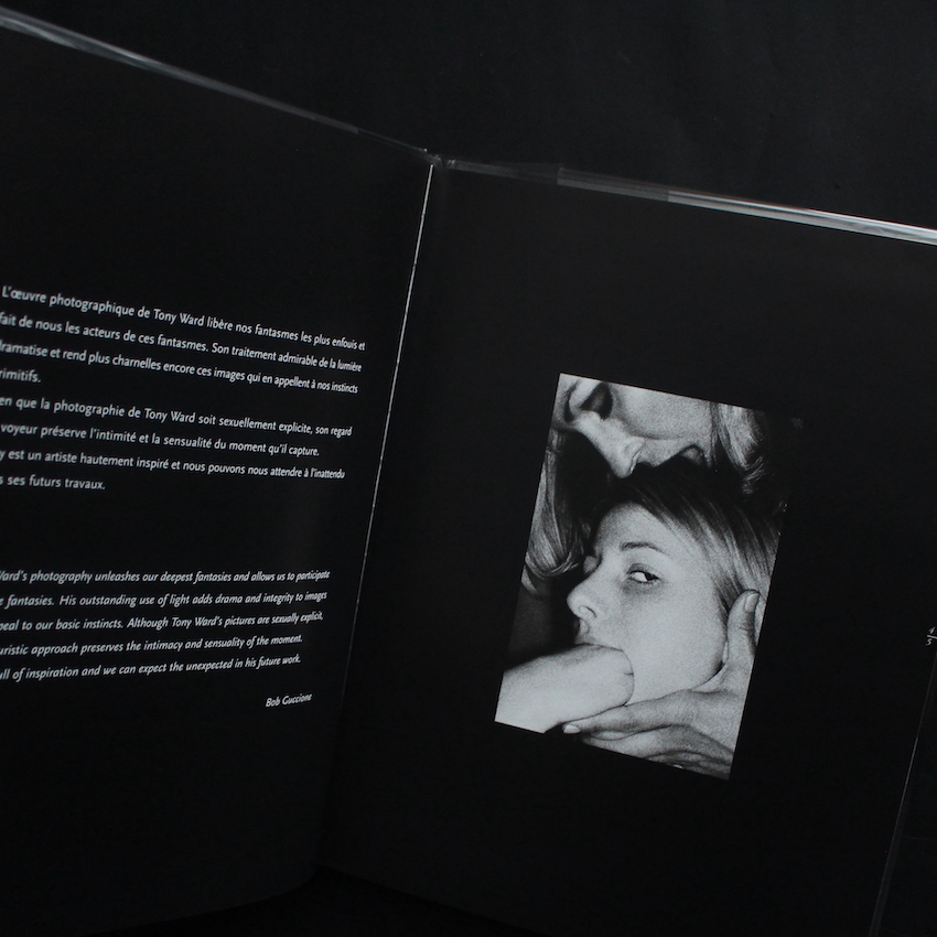 アメリカ・フィラデルフィア出身の写真家であるトニー・ウォード(1950-)の作品集『Orgasm』。1980年に製薬会社の企業写真家としてキャリアをスタートし、のちに美術史修士号を取得。90年代には『Obsessions』や『Tableaux Vivants』といった作品集を通じて、官能性と日常の狭間を鋭く捉えた作風で知られるようになり、官能に根ざしたエロティックなヴィジュアル表現で有名になります。成人向け雑誌『Penthouse』の創設者Bob Guccioneの支援も得て、エロティックのみならず、物語性、官能性、詩情性、それが交差するユニークな表現でその地位を確固たるものとしました。こちらは2000年に刊行された作品集です。