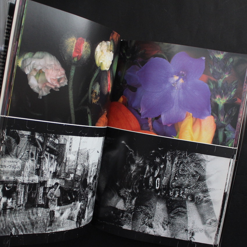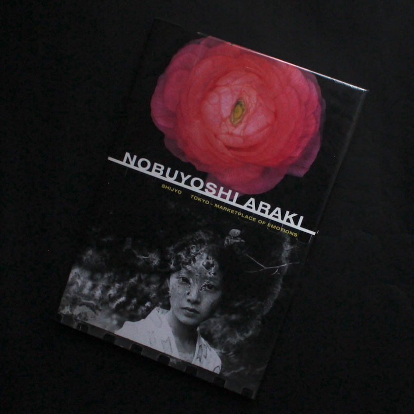 日本を代表する写真家・荒木経惟の作品集『Shijyo Tokyo - Marketplace of Emotions』。太陽賞を受賞した「さっちん」から始まった60年代、最愛の妻・陽子との出会いから生まれ、「荒木・私写真」の幕開けとも言える「センチメンタルな旅」に代表される70年代、名編集者・末井昭とのコンビによる過激な描写や「エロス」の絶頂、さらには映像表現にも秀でた才能を発揮した80年代、そして陽子の死を受けて、静物や風景を通してよりセンチメンタルな気持ちを描写するようになった90年代と、自身の気持ちや時代の気分に合わせて様々なスタイルを探求し続けきた荒木経惟。本書は、その90年代後半、荒木のエキシビジョンがドイツ、イタリア、イギリス、そしてニューヨークと世界各地で行われ、その一連で海外の出版社から刊行された作品集です。「市場(しじょう)」と「私情(しじょう)」のダブルミーニングを意識したタイトルで、上段はカラーのフラワー、下段はダメージ加工されたモノクロが配置され、「生と死」「美と退廃」「愛とエロス」など当時の荒木の二面性が描写された内容となっています。