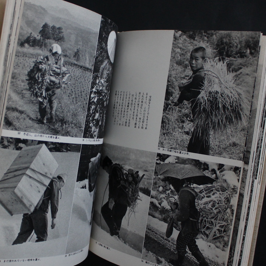日本の写真家である須藤功の作品集『運ぶ 民俗写真集 フォークロアの眼3』。1938年秋田県生まれ、航空自衛隊の写真斑を経て、1966年からは日本観光文化研究所において民俗学の第一人者である宮本常一に教えを請い、以降は民俗写真家として、日本のフォークロア・カルチャーの研究と写真を発表してきました。近年も、『宮本常一 人間の生涯は発見の歴史であるべし』(2022)を発表したり、過去にも『花祭りのむら』(2000)、『山の標的 猪と山人の生活誌』(1991)などなど、多数の書籍を刊行してきた須藤ですが、本書は、1970年代後半に刊行されていた全10巻セットの「民俗写真集 フォークロアの眼」シリーズの第3号で、当時の人力による「運搬の民俗」を収めたモノクロで構成された一冊です。