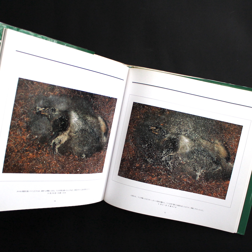 日本の写真家・宮崎学の作品集『死 / Death in the Nature』。1949年長野県伊那谷生まれ、72年より写真家として独立し、大自然と動植物に恵まれた土地柄から、動物写真の作品で評価を得て、82年発表の『鷲と鷹』、90年発表の『フクロウ』で第9回土門拳賞を受賞しています。そして、本作が94年刊行の作品集で「動物の死」をテーマにした一冊。動物の死は「終わり」でなく「始まり」。死によって、細菌・微生物・虫たちによって大地は肥やされ、植物を育ませ、動物たちは成長できる。まさに自然の営みをなめらかに展開させているのであり、至っては、人間が火葬する慣習にも異を唱えているます。「死」というものが導く、新たな未来について、その気づきを与える名著です。帯欠。