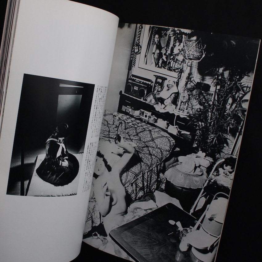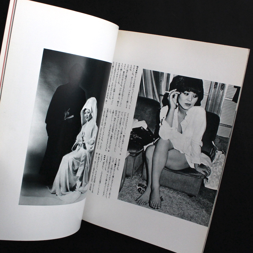 本書は、2008年に休刊するまで29年という長い歴史を持つ雑誌であった『S&Mスナイパー』の別冊として1981年に刊行された写真集『原色の女 ドキュメント大谷英子』。『SMセレクト』『SMファン』『S&Mコレクター』『SMキング』など、70年代のSM雑誌ブームの後発で刊行されたものですが、従来の土着的なモノクロ感満載のイメージから、スタイリッシュで、新感覚なイメージを打ち出そうと出版されたS&Mスナイパー。荒木経惟も長らく連載していた雑誌としても有名ですが、こちらはホステスやビニ本で活躍した大谷英子という女性にフォーカスした一冊。結婚⇒出産⇒離婚⇒同棲⇒離別⇨同棲⇒離別、と波瀾万丈な人生を歩んできた女性の性にフォーカスしたイメージがメインで、ユニークなレイアウトや粗いモノクロが魅力的な一冊です。