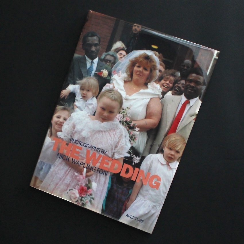 イギリスの写真家・ニック・ワプリントンの作品集『The Wedding: New Pictures from the Continuing "Living Room" Series』。1965年アデレード生まれのワプリントンは、労働者階級の家族や若者文化を独自の親密な距離感で捉えた作品群で知られ、1990年代の英国写真界を代表する存在です。ロンドンやノッティンガムを拠点に、ありふれた日常の奥にある感情やユーモアを鋭く、そして温かく映し出してきました。彼の作品は、社会的背景や階級意識といった主題を孕みつつも、決して断罪的にならず、あくまで生活のリアリティを描くことに徹しています。本書は、代表作『Living Room』の続編として1996年に刊行されたもので、同じコミュニティの中で行われたある結婚式を中心に構成されています。式の準備、家族の集合、宴の混沌――写真はすべてカラーで、陽気でざらついた空気をそのまま写し取っています。華やかさと混沌が交錯する場面の数々は、祝祭であると同時に、イギリスの庶民的な暮らしを浮き彫りにしています。キャプションを一切排し、写真だけで展開される構成により、見る者はまるで物語を覗き見るような感覚を味わいます。