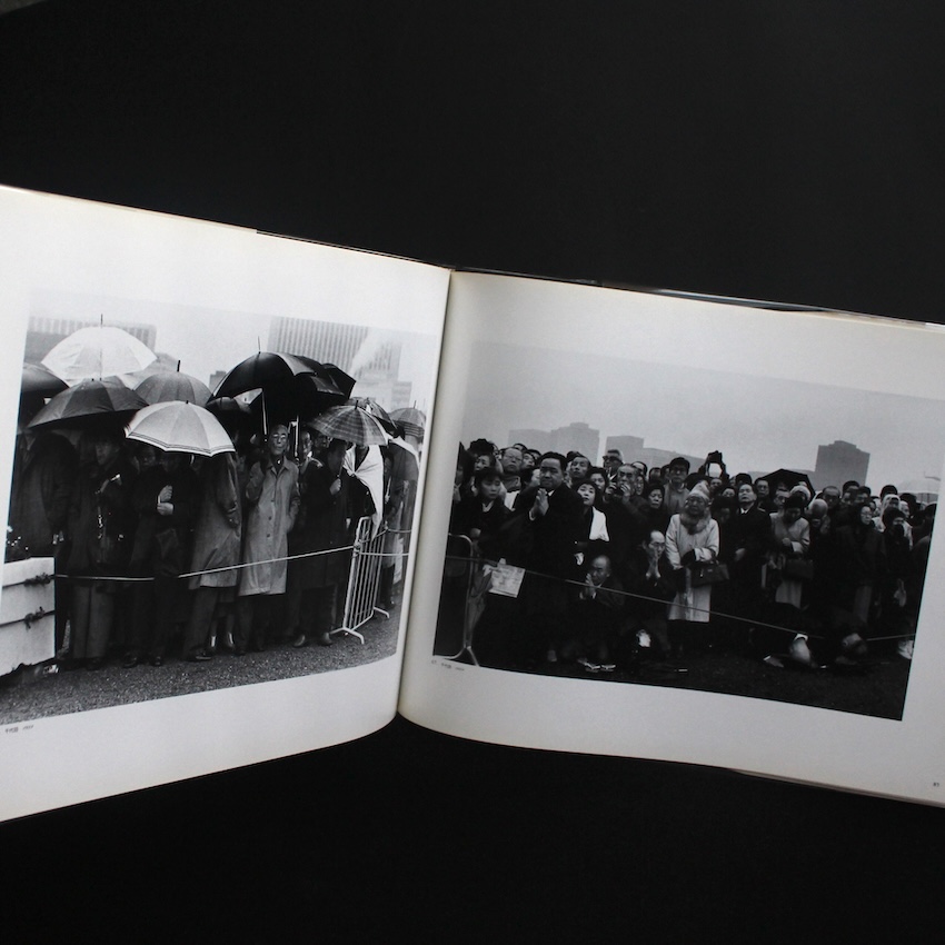日本の写真家・土田ヒロミの作品集『砂を数える / Counting Grains of Sand 1976-1989』。1944年福井県に生まれた土田は、早稲田大学卒業後に写真家として活動を開始し、70年代の『ヒロシマ』や『俗神』など、社会的テーマに根ざした作品で注目されました。社会や歴史、そして風土との関係を冷静かつ深く見つめる視座を持ち、現代日本写真の中核的存在として高く評価されています。本書は、タイトルの「砂」は単なる自然物ではなく、人や群集のメタファーとして扱われています。街に佇む人々や群れ、広場に集まる群集、無名の存在として流動する人間の姿を、まるで無数の砂粒のように捉えた視線が貫かれています。個が集まり群となり、やがて再びバラバラになる――その儚さや不確かさを、静かで均質なトーンの中に描き出しています。社会における個人の匿名性や、時代に埋もれていく存在の在りようを問いかけるような構成は、ドキュメンタリーでありながら詩的でもあり、土田の写真哲学が凝縮された一冊となっています。